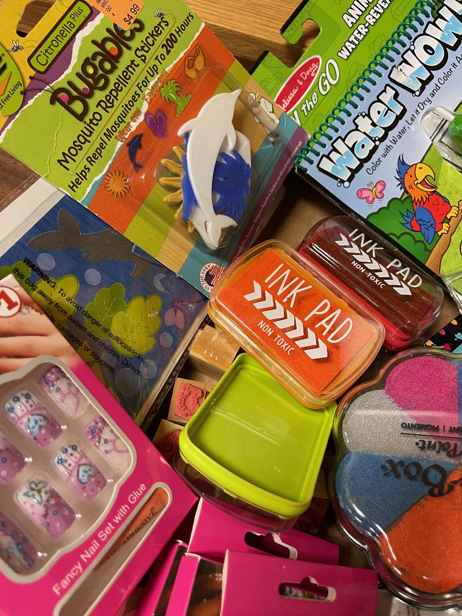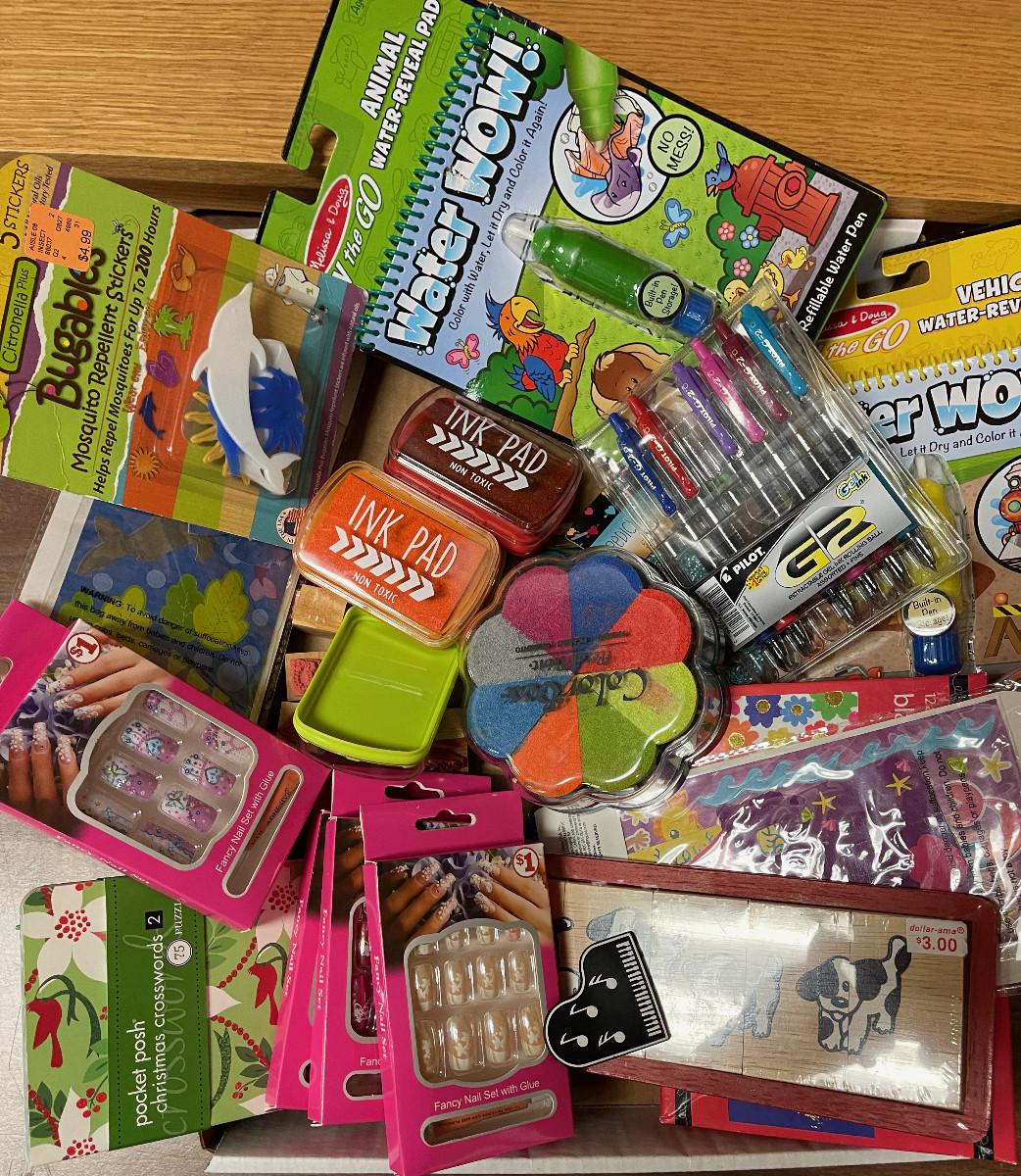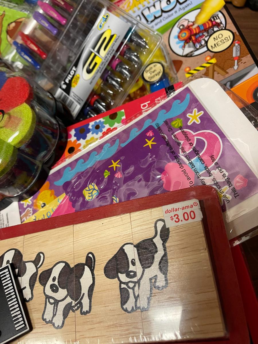 #137 Tray full of Pens, Activities, Stamps, cards etc.