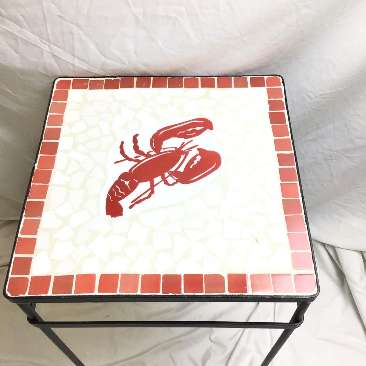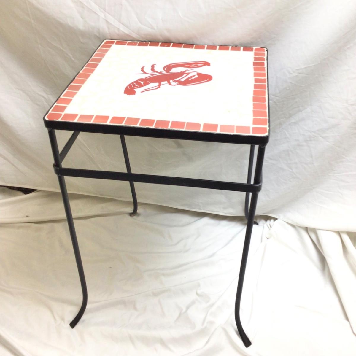 1371 Lobster Mosaic Tile Wrought Iron Stand Table