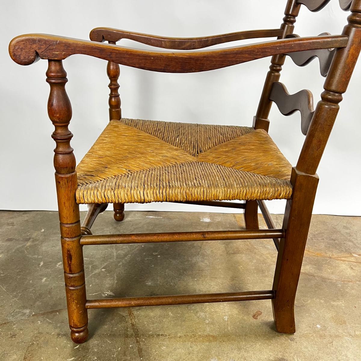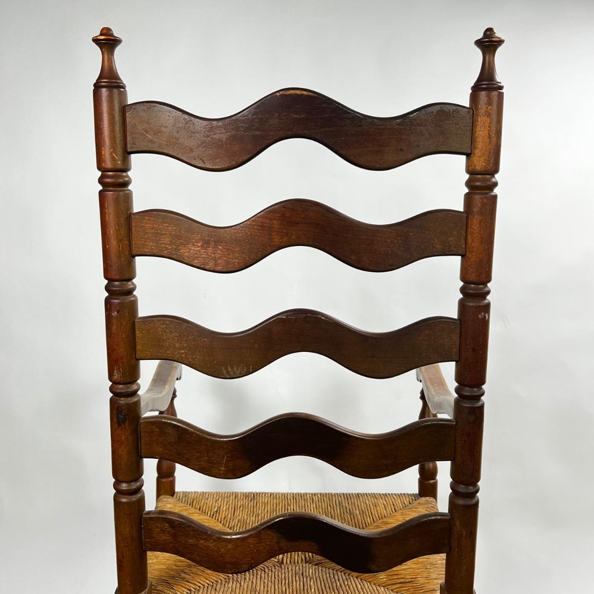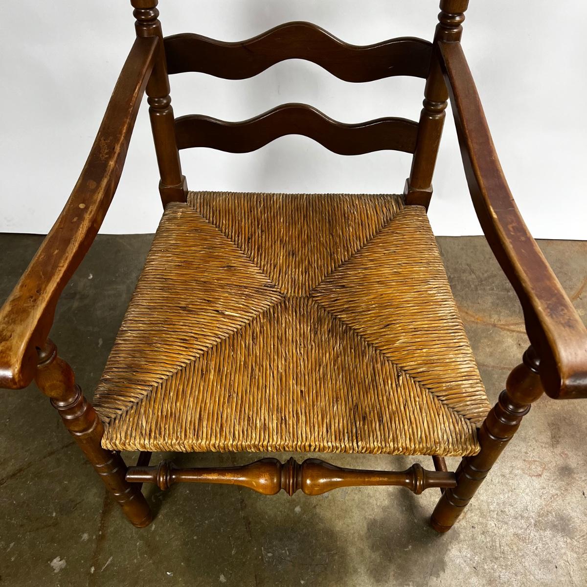 Pair of Vintage Ladder Back Armchairs with Rush Seats