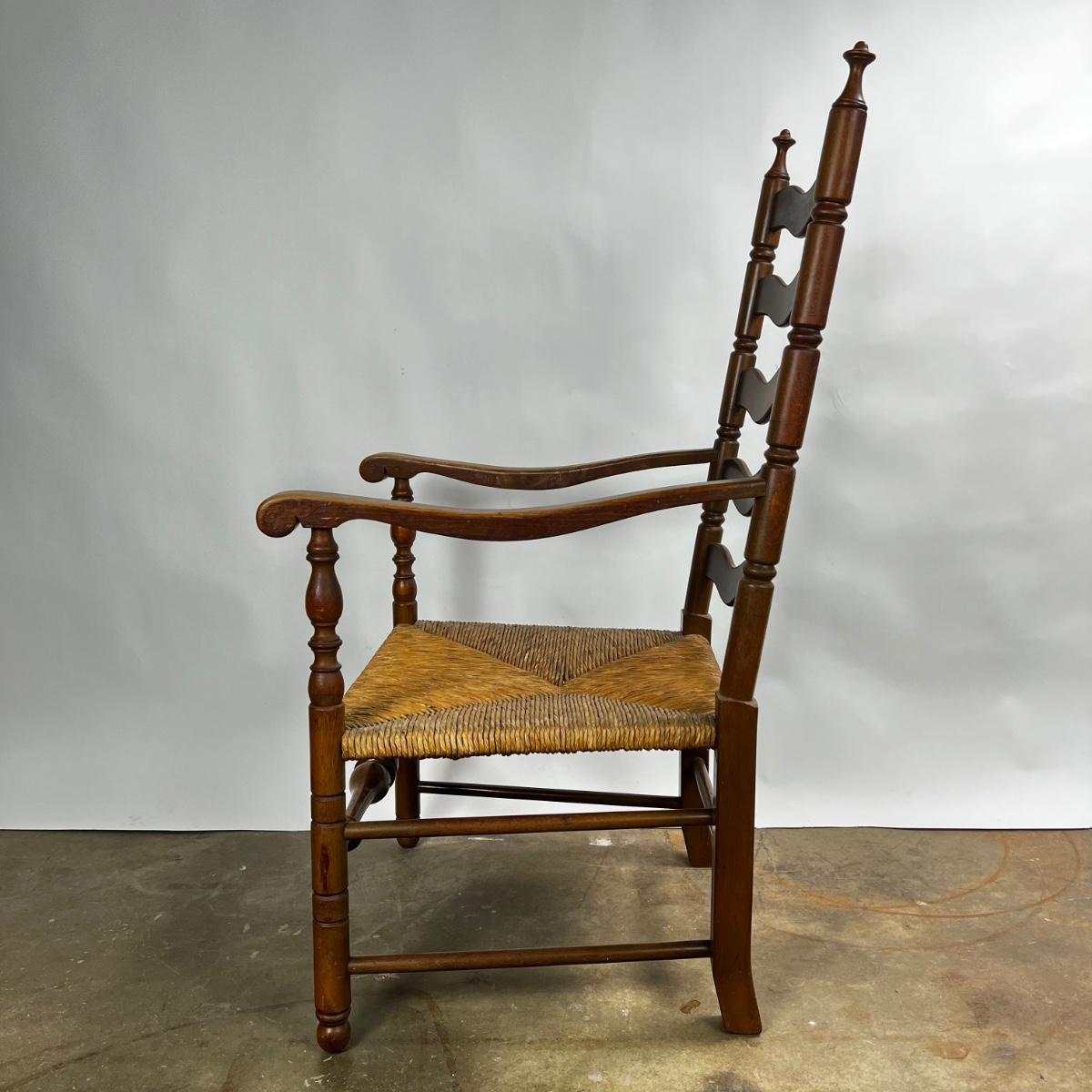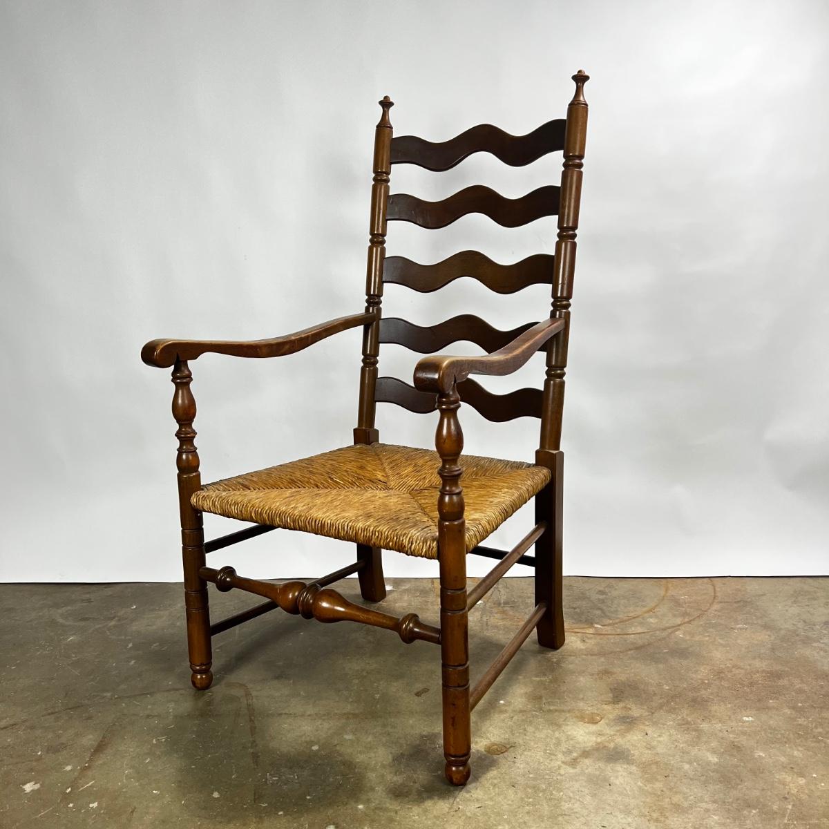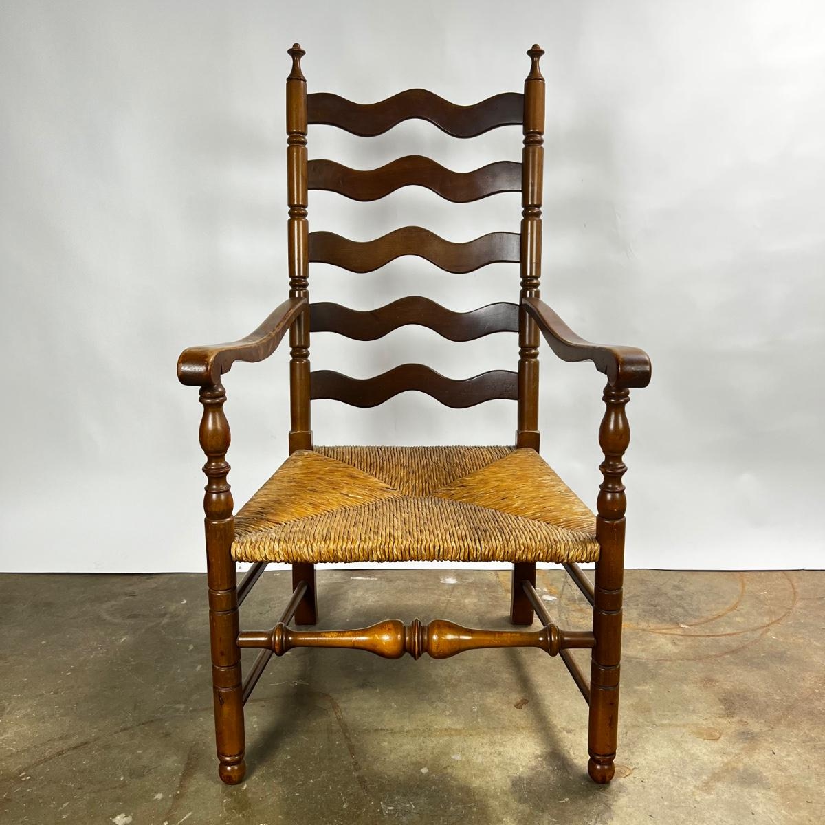 Pair of Vintage Ladder Back Armchairs with Rush Seats