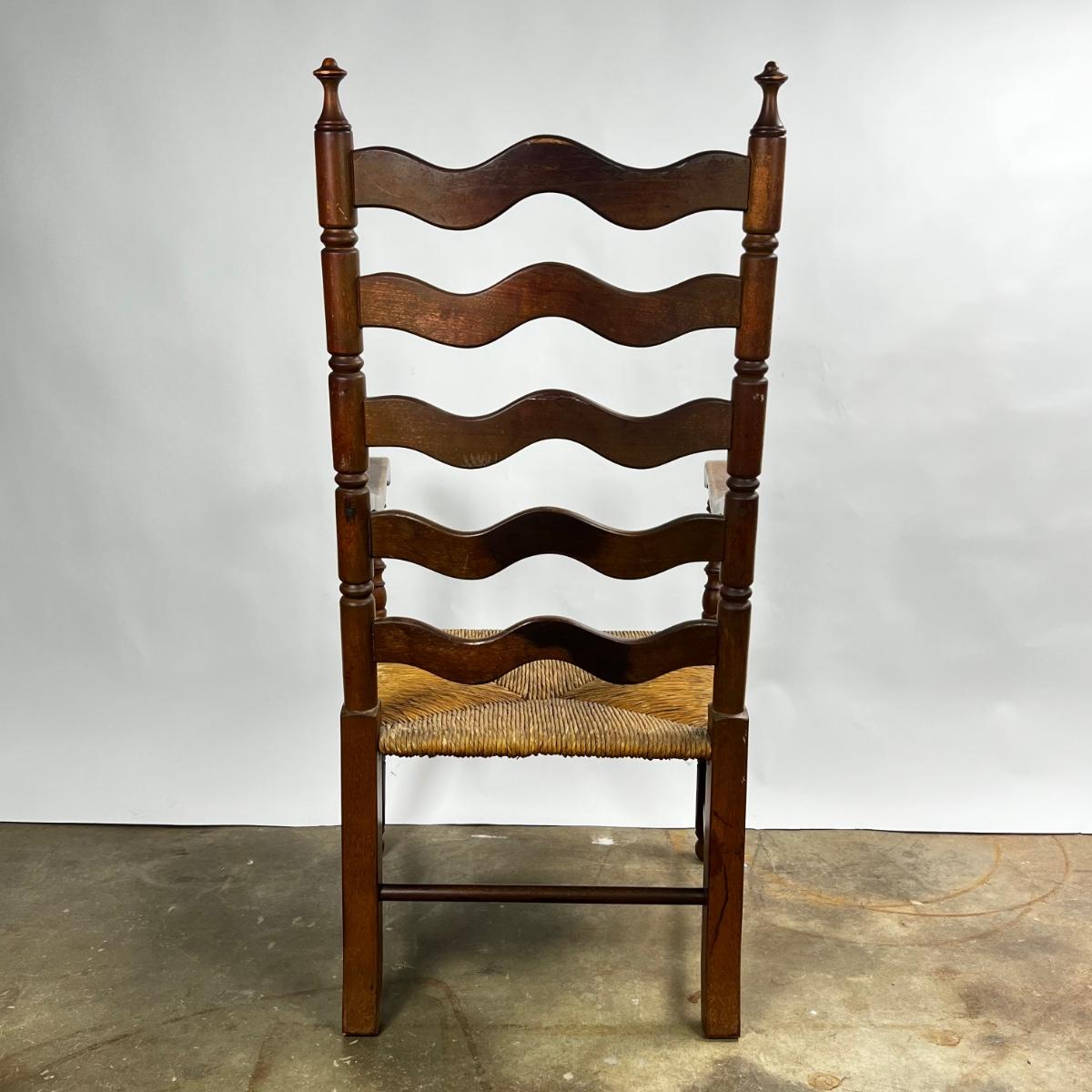 1373 Pair of Vintage Ladder Back Armchairs with Rush Seats