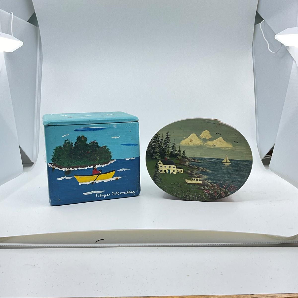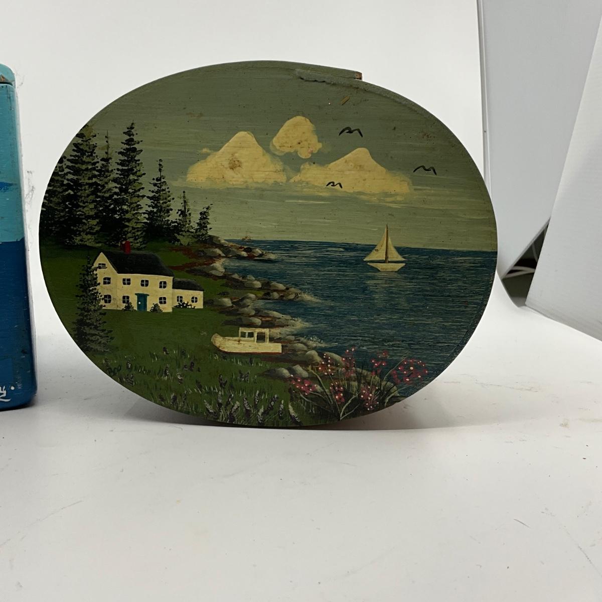 One oval shaker style box measuring 6" deep x 7.5" wide x 3.5" high