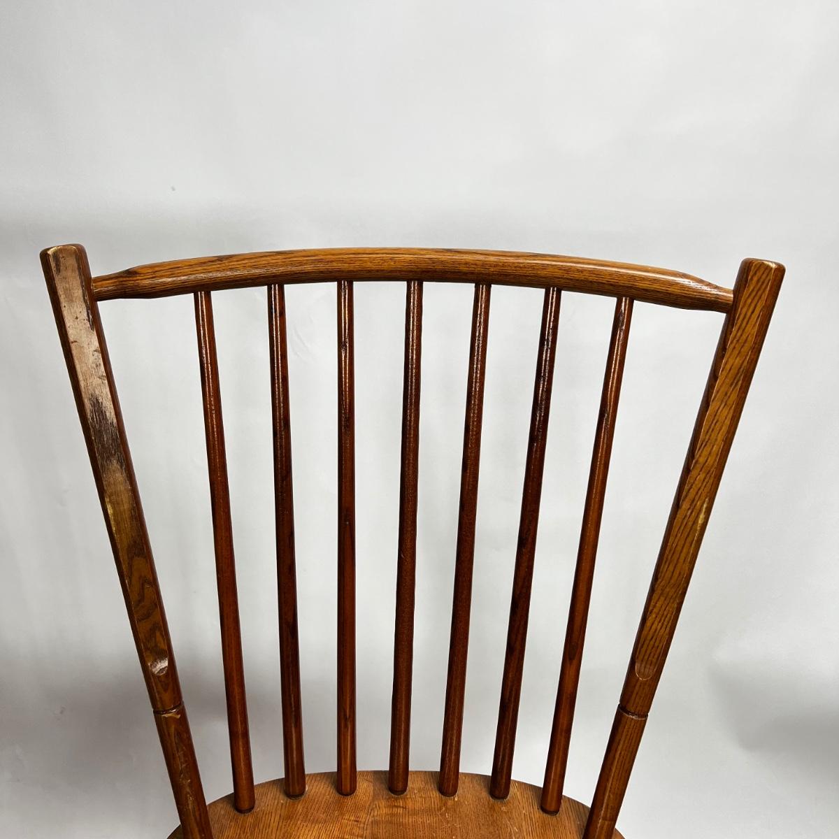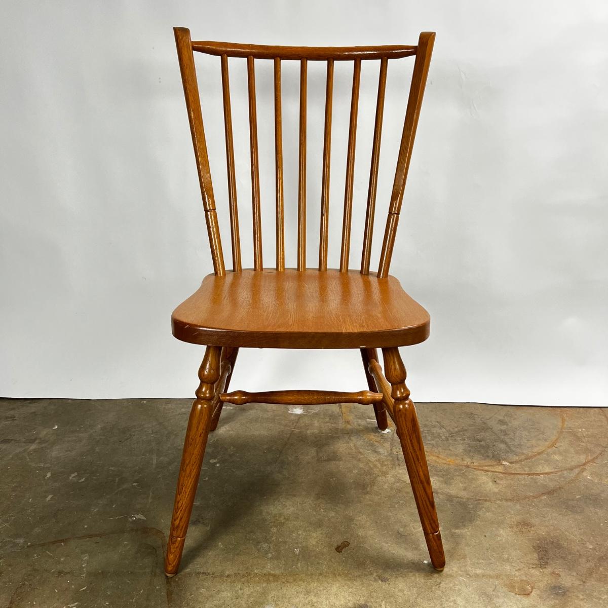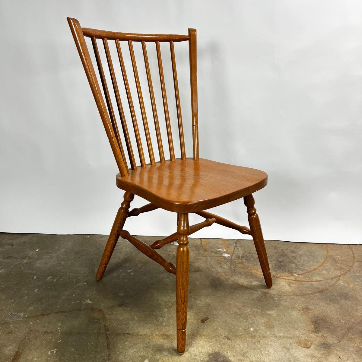 Set of 5 Spindle Back Dining Chairs. Includes 4 identical chairs, one chair is slightly different.