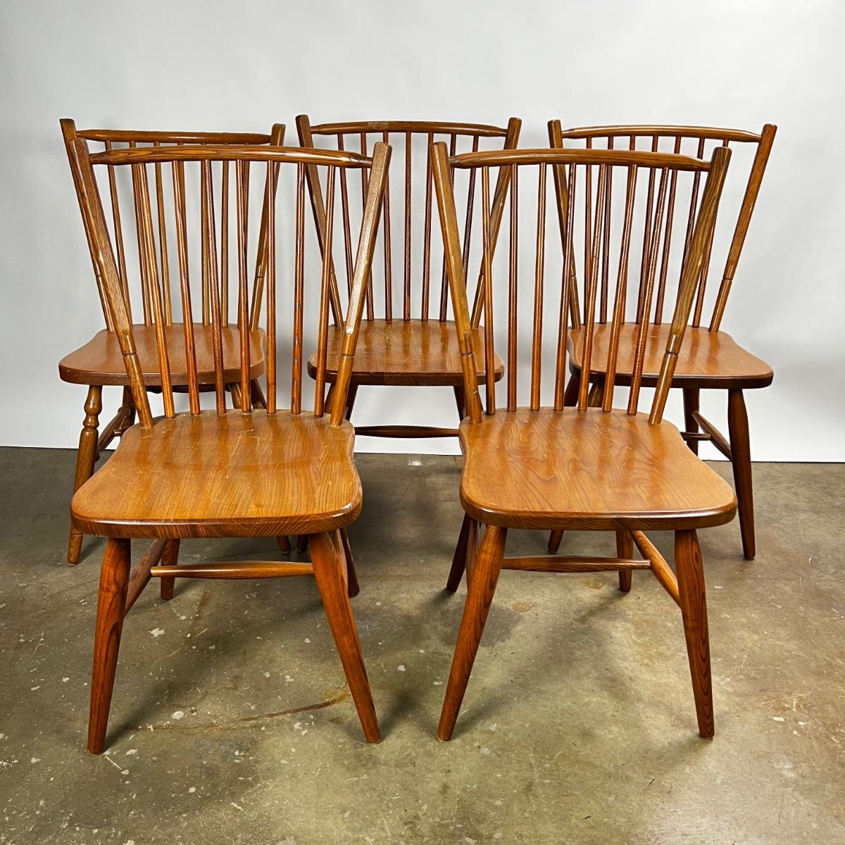 1375 Set of 5 Mid Century Spindle Back Dining Chairs