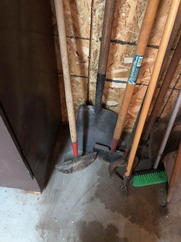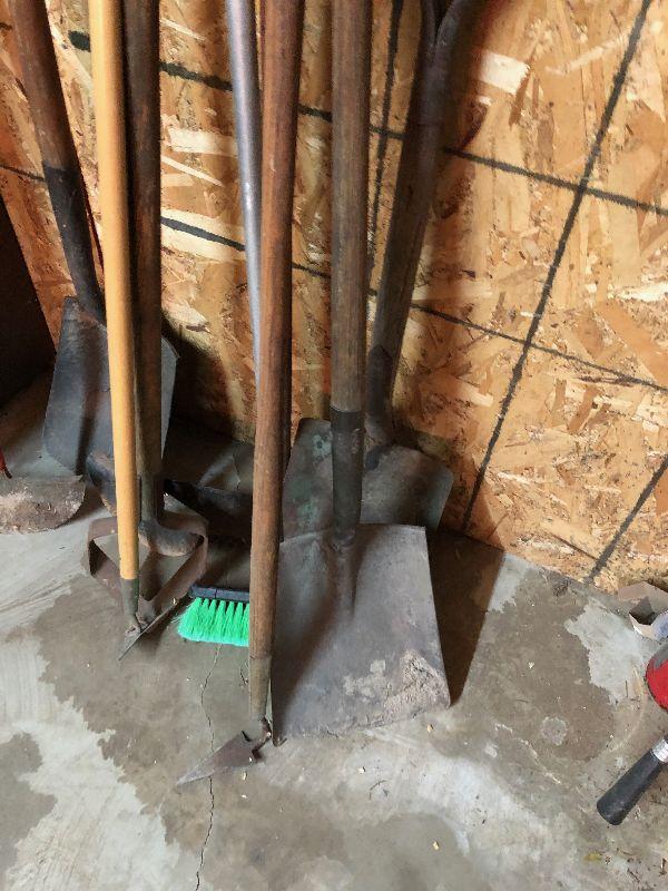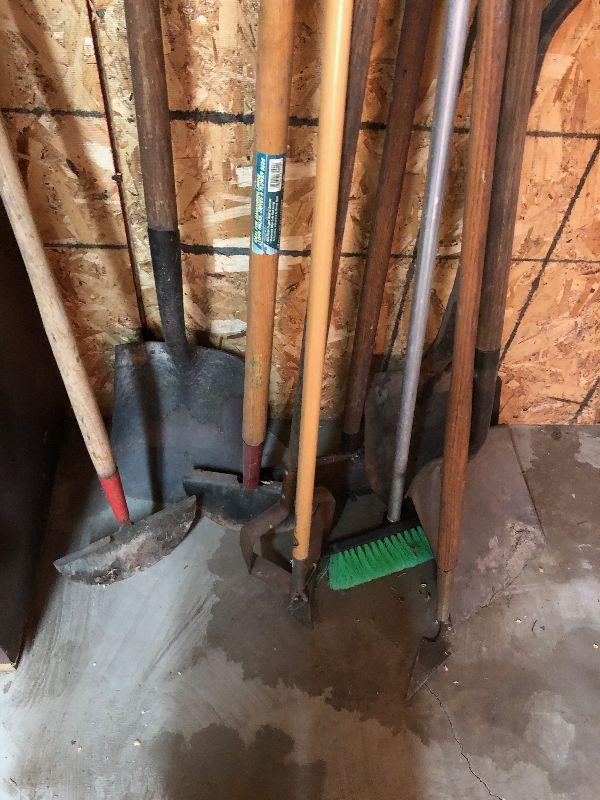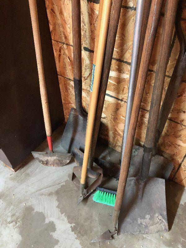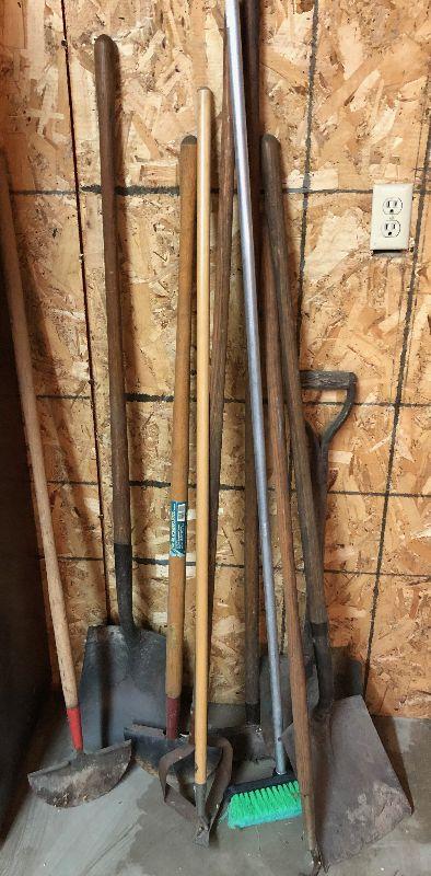 #1378G 10 Yard Tools: Shovels, Racks, Hoes.
