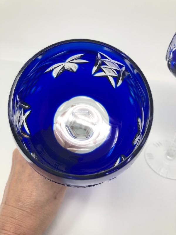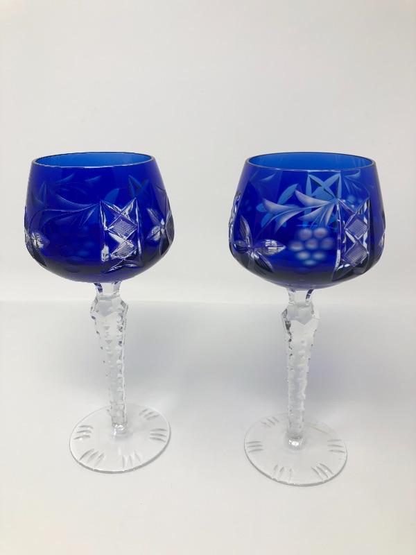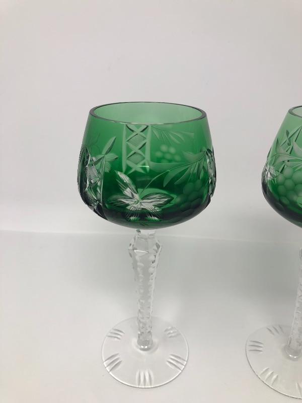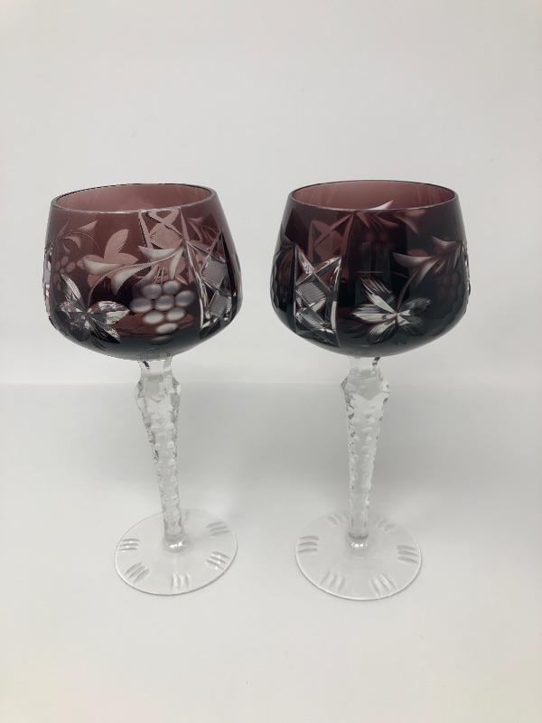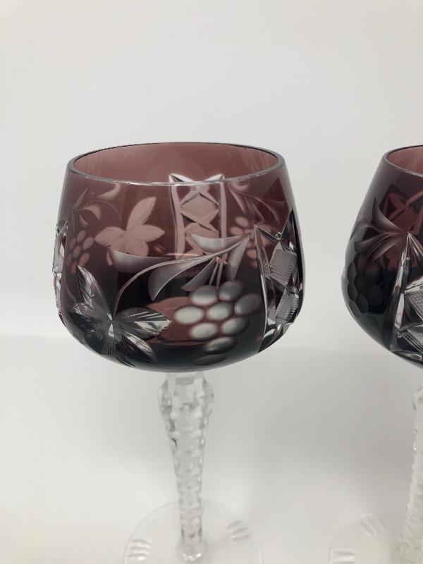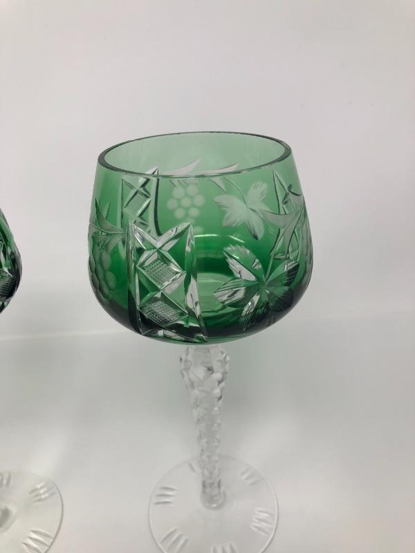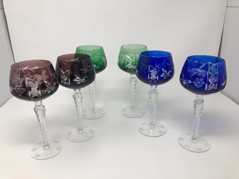 137:  Bohemian Colored Czech Etched Hand Cut Crystal Wine Goblets