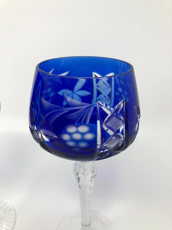 137: Bohemian Colored Czech Etched Hand Cut Crystal Wine Goblets