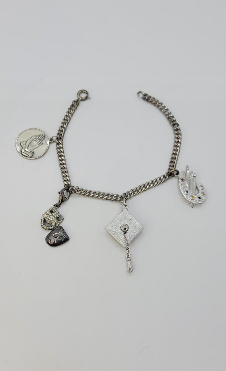 138: Sterling Silver " Arts" Charm Bracelet