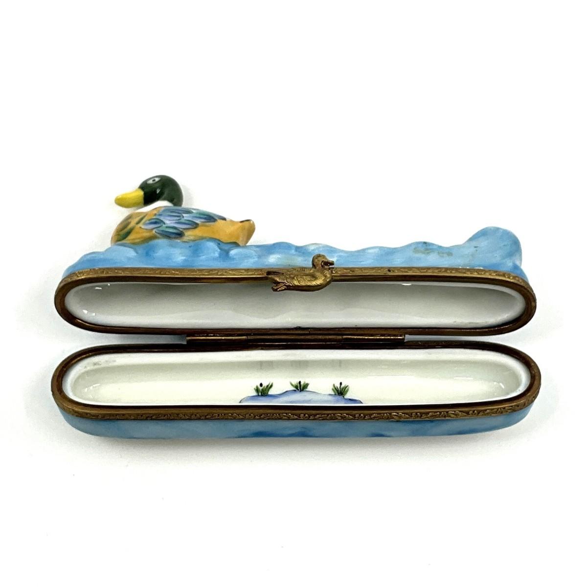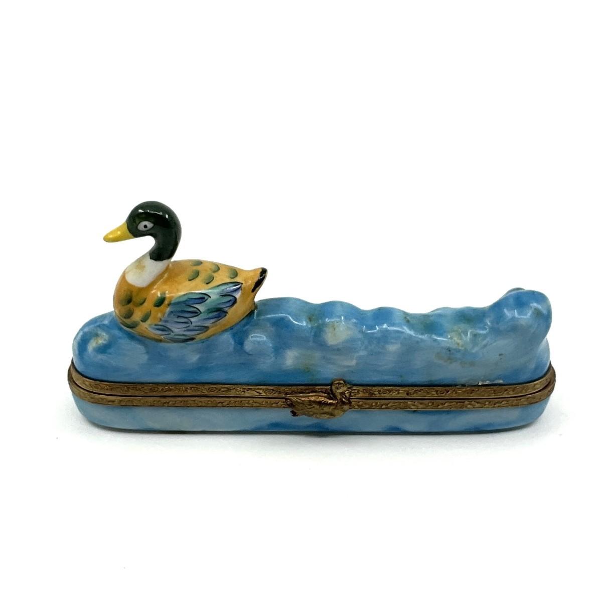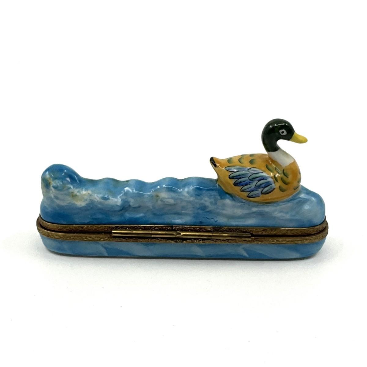 138 Limoges France Paint Main H.F. Mallard Swimming Porcelain Box