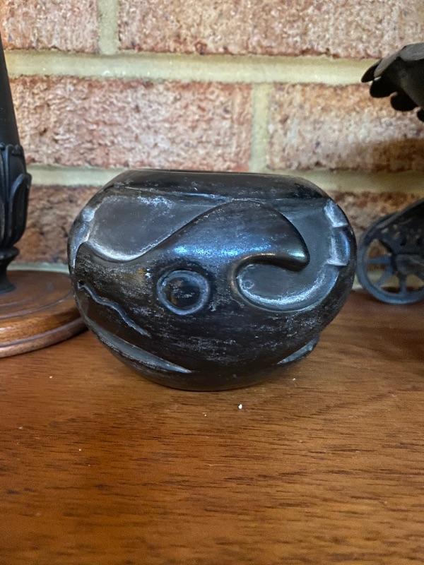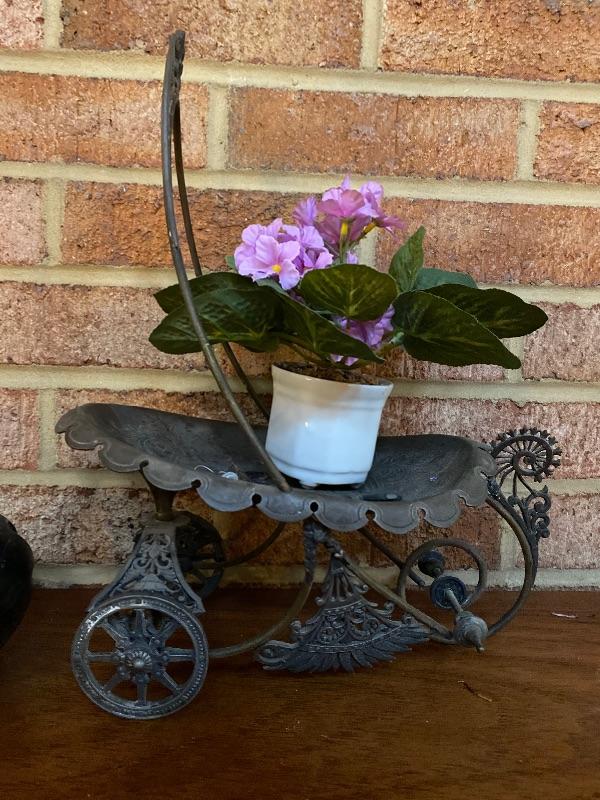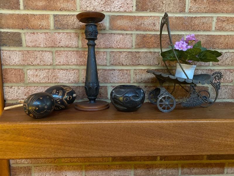 Lot of Decorative Items, candlestick , silverplate buggy , Moroccans, carved bowl by Madeline T. St. Clara