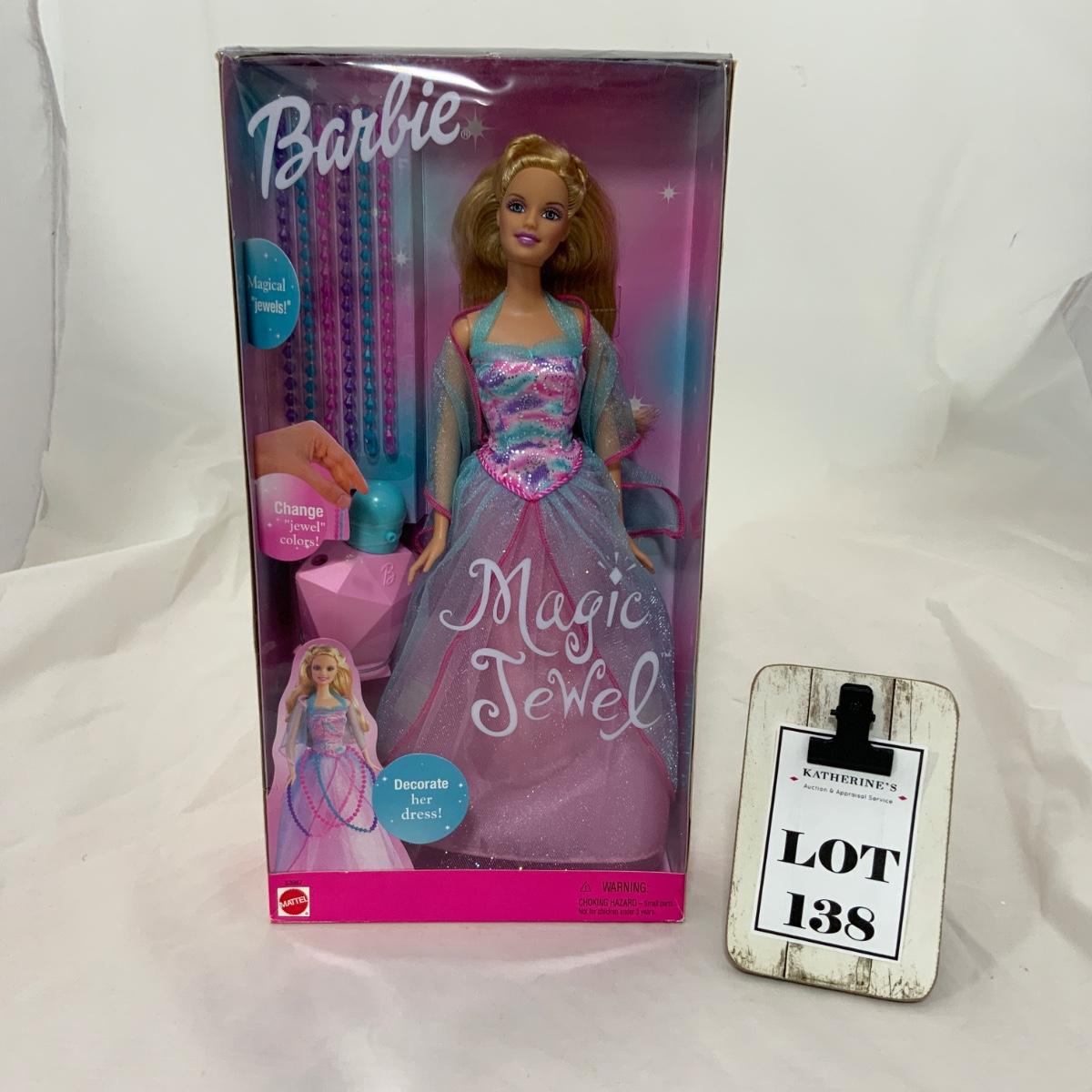 Magic Jewel Barbie is a cutie! You can change “jewel” colors on her dress and give it a totally different look depending on your mood. How clever! Produced by Mattel in 2001. Please see photos for details and condition. !!! Proceeds from this auction will be donated to the NEW COMMUNITY SHELTER in Green Bay, Wisconsin. Please see Sale Description to the Left for more information. !!! ::: Shipping is available on this lot. If you require shipping you must let us know at the close of the auction. We will coordinate with you after the item has been won. Shipping fees will include insurance up to or exceeding the value of all items being mailed. If you have any questions regarding this lot please contact the auctioneer either via this website, by direct email or by phone. PICK UP TIMES and other important information can be found in the TERMS and DESCRIPTION of the auction. Please take a look for pertinent information. Thanks!