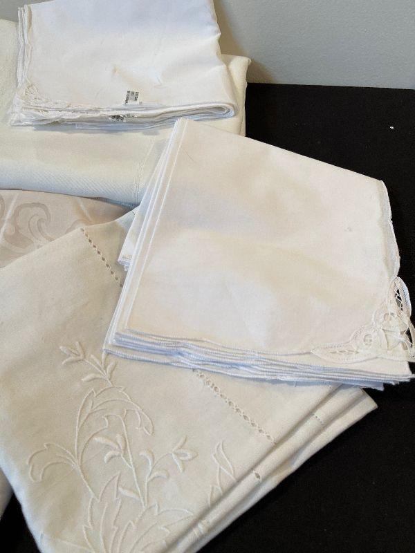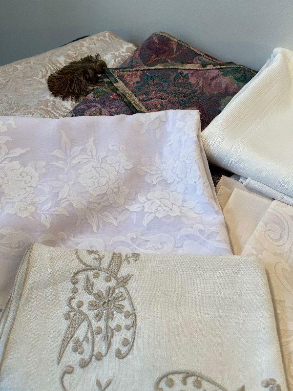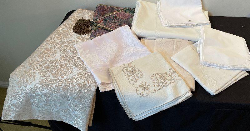 #138 Mixed Lot of Linens: Demask Table Clothes, Napkins