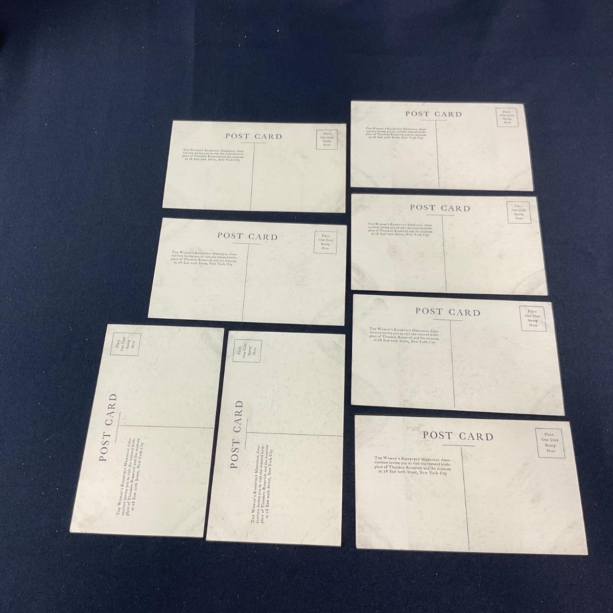 Eight vintage black and white Roosevelt house photo postcards. Please see photos for details and condition. Any condition statement is given as a courtesy to a client, is an opinion, and should not be treated as a statement of fact. Reference to condition written, oral or within a condition report shall not be regarded as a full account of condition and may not include all defects, alterations, or restorations. Absence of a condition report does not imply a lot is flawless or lacking imperfections or damage. Katherine’s Auction & Appraisal Service shall have no responsibility for any error or omission. Returns shall not be accepted on the basis of condition. ::: Shipping is available on this lot. If you require shipping you must let us know at the close of the auction. We will coordinate with you after the item has been won. Shipping fees will include insurance up to or exceeding the value of all items being mailed. If you have any questions regarding this lot please contact the auctioneer either via this website, by direct email or by phone. PICK UP TIMES and other important information can be found in the TERMS and DESCRIPTION of the auction. Please take a look for pertinent information. Thanks!