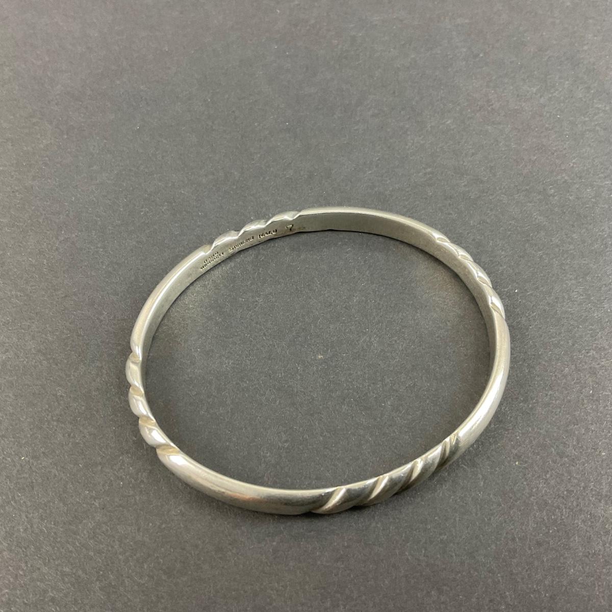 One vintage sterling silver marked hand wrought 1930’s-1940’s Kalo 7 Bangle. The total weight for this piece is 29.05 grams. Please see photos for details and condition. Any condition statement is given as a courtesy to a client, is an opinion, and should not be treated as a statement of fact. Reference to condition written, oral or within a condition report shall not be regarded as a full account of condition and may not include all defects, alterations, or restorations. Absence of a condition report does not imply a lot is flawless or lacking imperfections or damage. Katherine’s Auction & Appraisal Service shall have no responsibility for any error or omission. Returns shall not be accepted on the basis of condition. ::: Shipping is available on this lot. If you require shipping you must let us know at the close of the auction. We will coordinate with you after the item has been won. Shipping fees will include insurance up to or exceeding the value of all items being mailed. If you have any questions regarding this lot please contact the auctioneer either via this website, by direct email or by phone. PICK UP TIMES and other important information can be found in the TERMS and DESCRIPTION of the auction. Please take a look for pertinent information. Thanks!