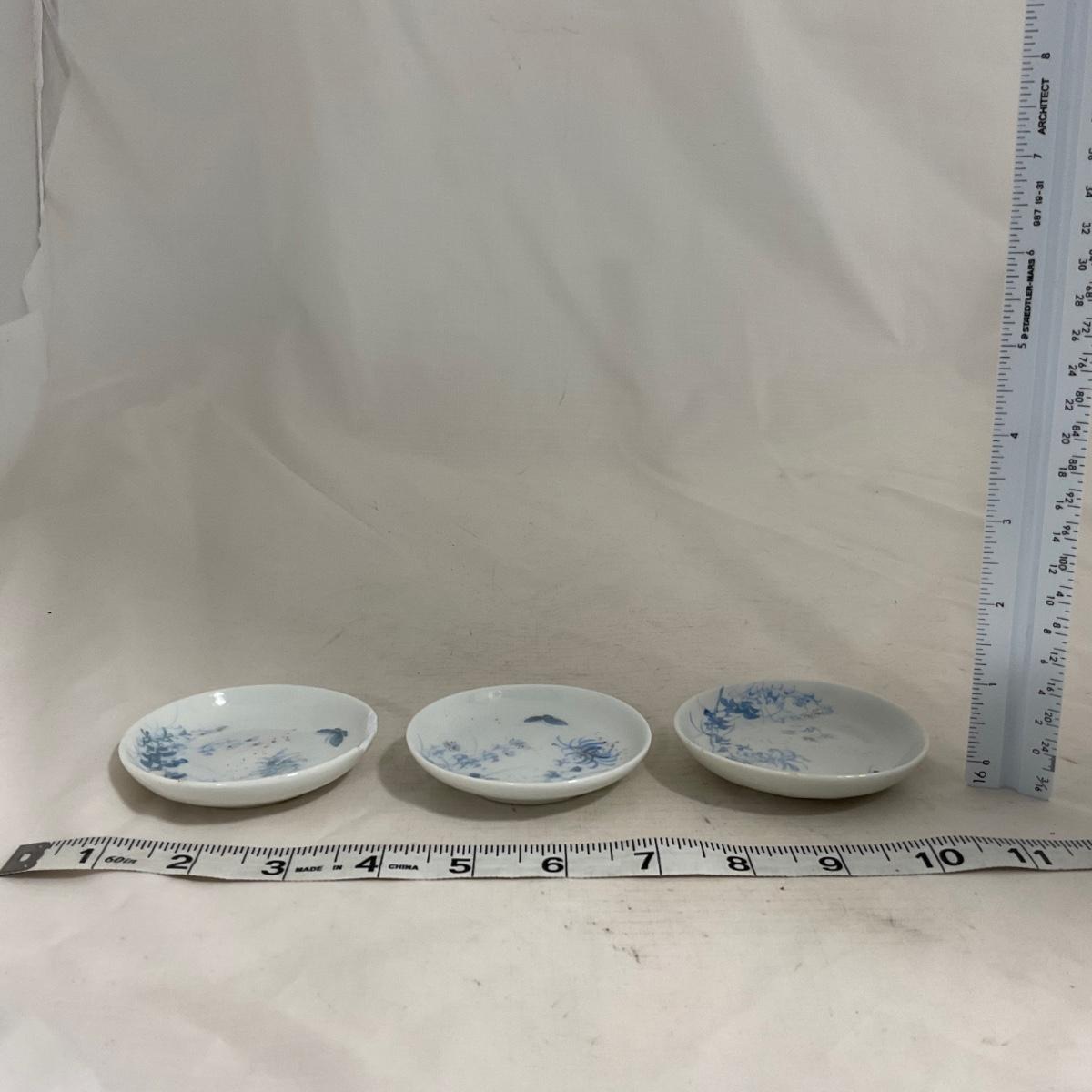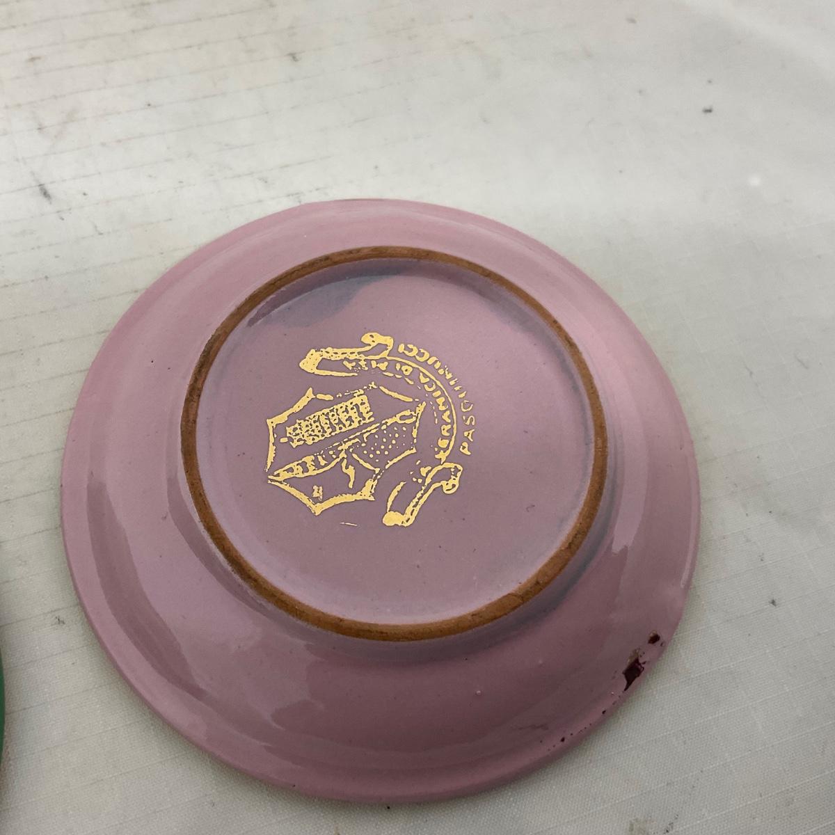 Six miscellaneous butter pats of different colors and designs these piece are very well loved and some do have damage. Please see photos for details and condition. ::: Shipping is available on this lot. If you require shipping you must let us know at the close of the auction. We will coordinate with you after the item has been won. Shipping fees will include insurance up to or exceeding the value of all items being mailed. If you have any questions regarding this lot please contact the auctioneer either via this website, by direct email or by phone. PICK UP TIMES and other important information can be found in the TERMS and DESCRIPTION of the auction. Please take a look for pertinent information. Thanks!