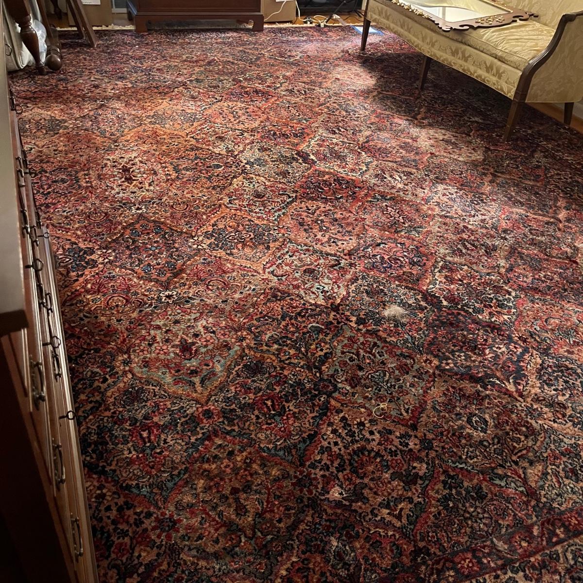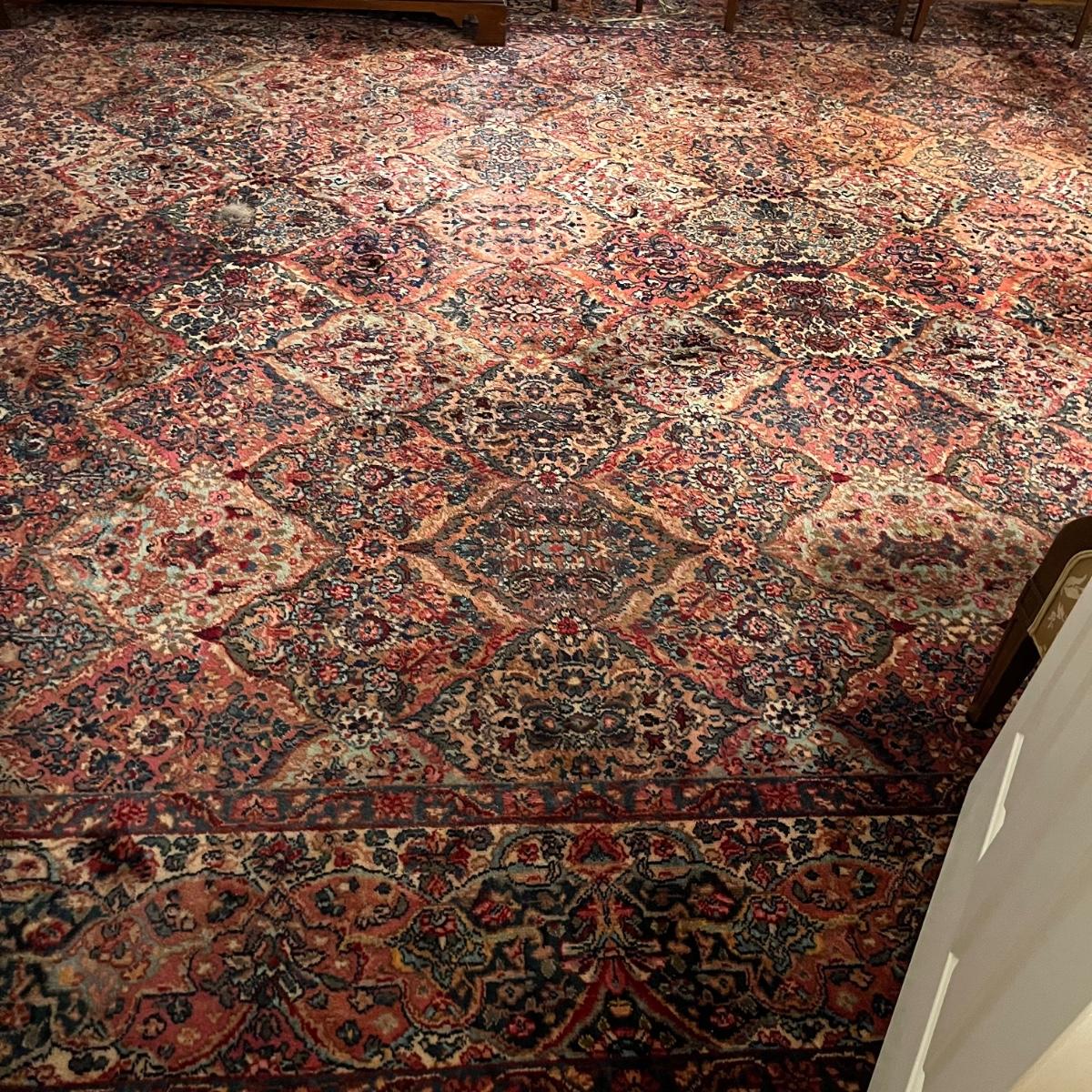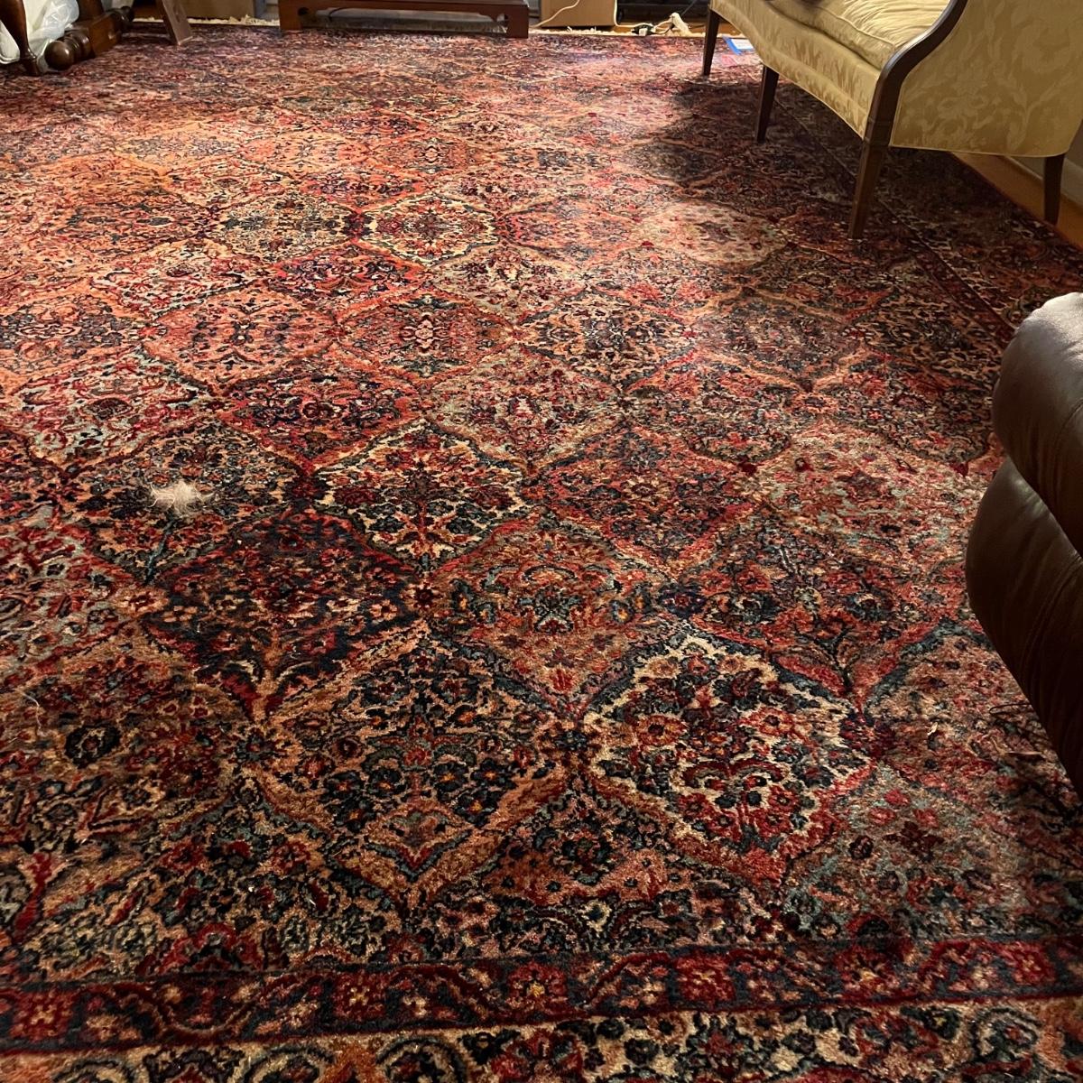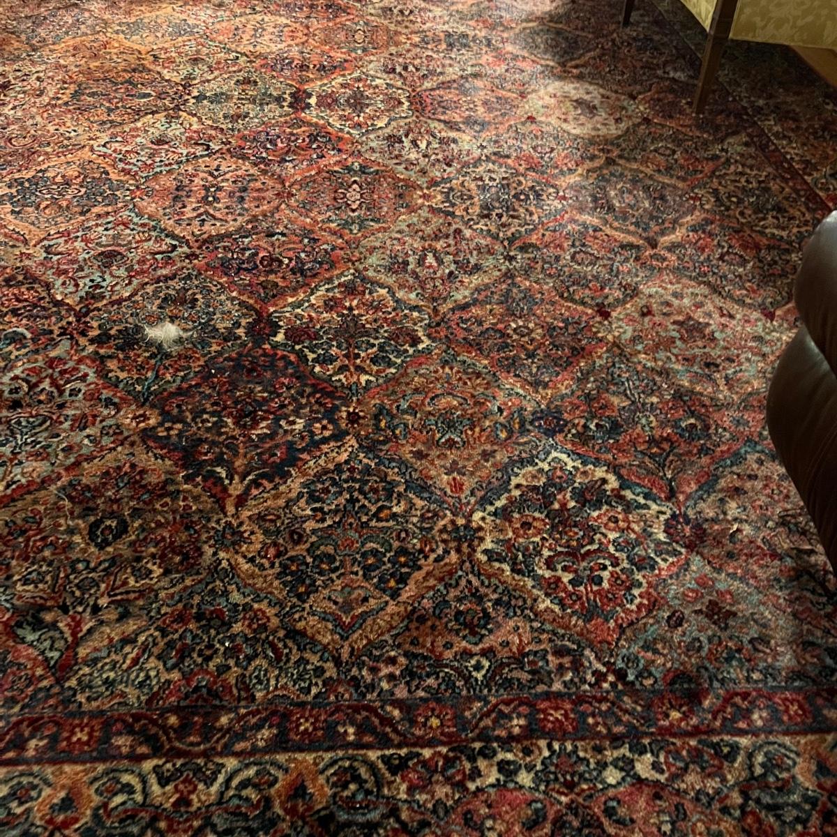 Lot includes a large area rug that measures 138” x 194”. The winning bidder will need to bring help to move and load as item is substantial and very heavy. Rug has a urine odor and will need to be deep cleaned.