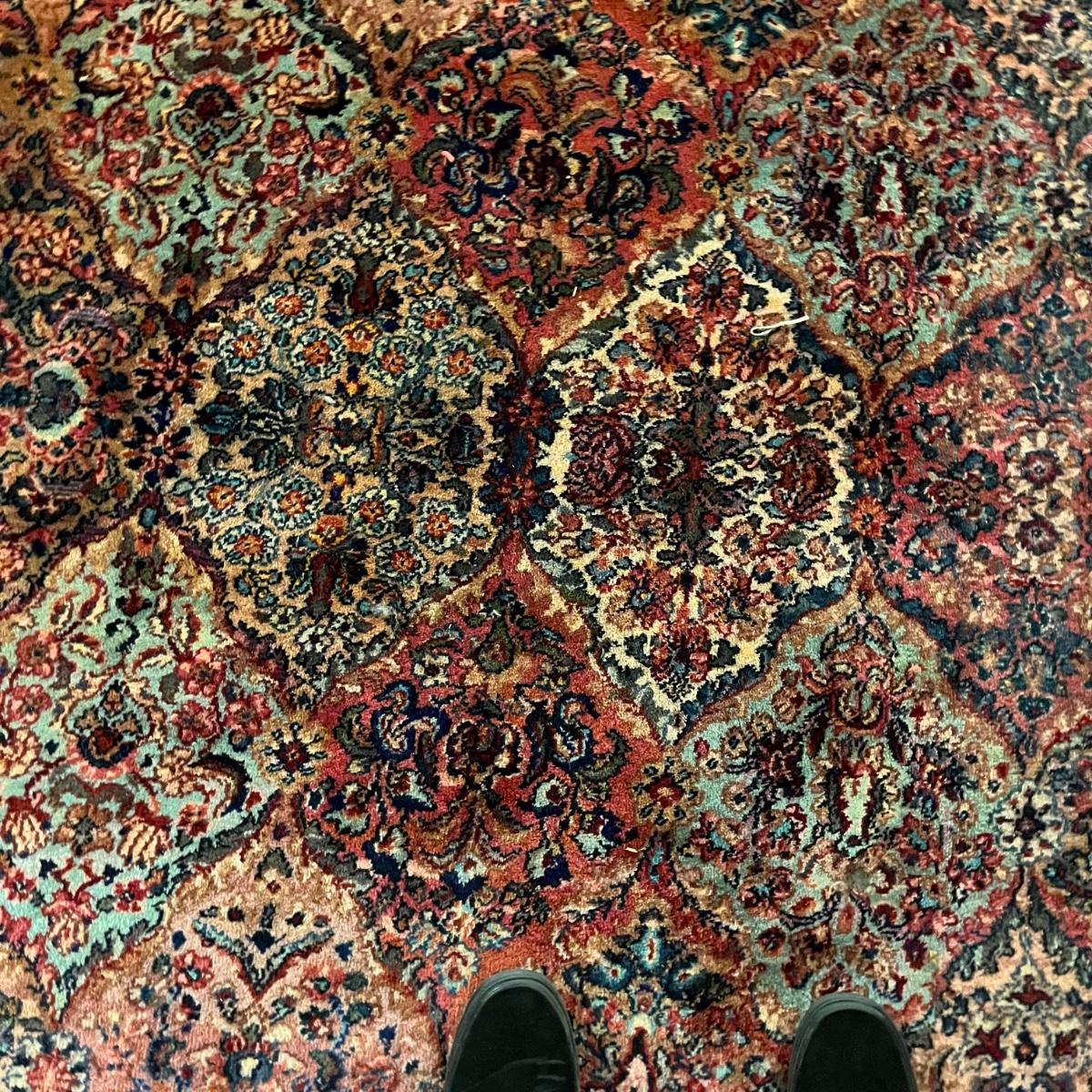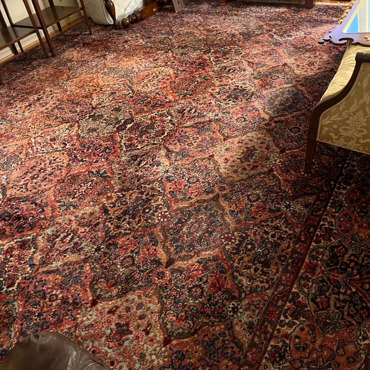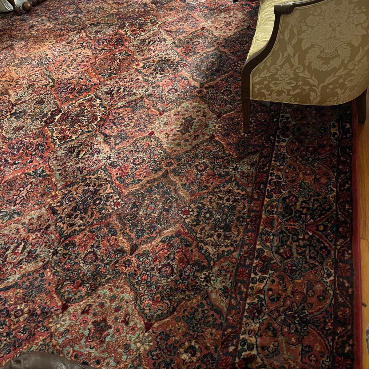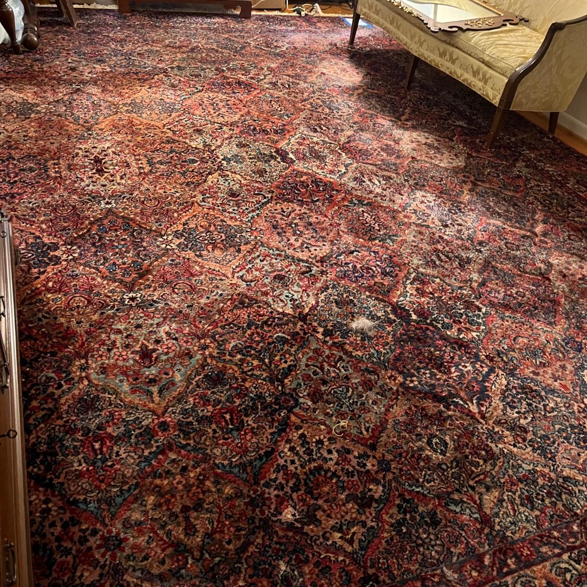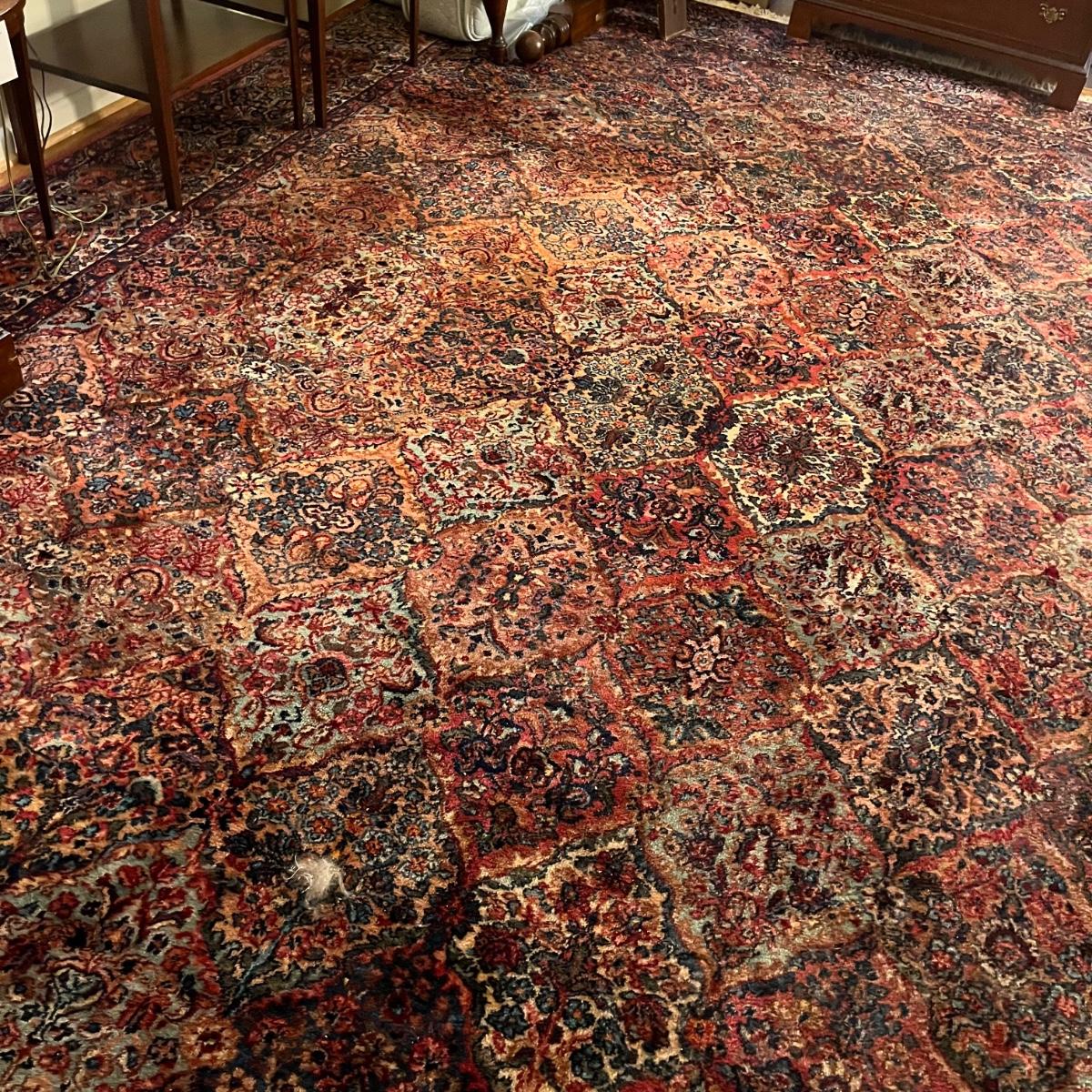 Lot includes a large area rug that measures 138” x 194”. The winning bidder will need to bring help to move and load as item is substantial and very heavy. Rug has a urine odor and will need to be deep cleaned.