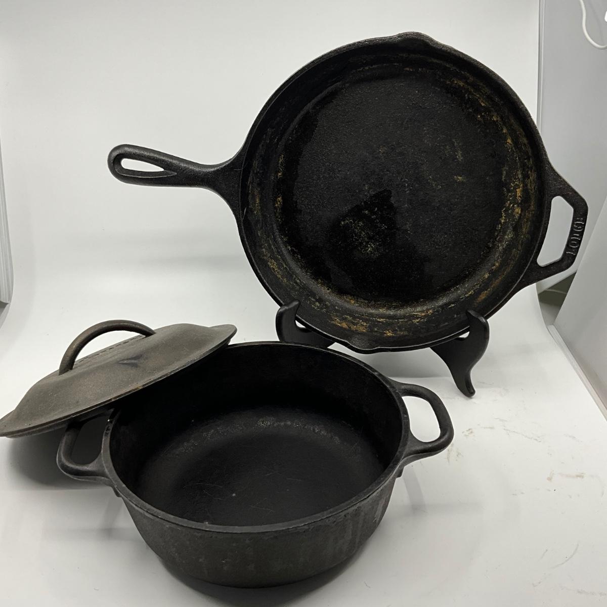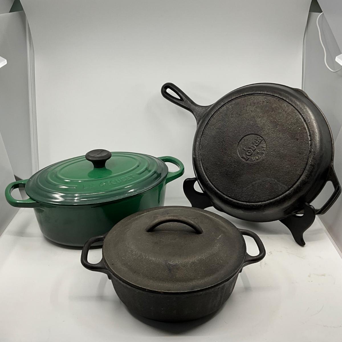 1381 Large Oval Le Creuset Cast Iron #25 Pot with Lodge Stockpot and Skillet