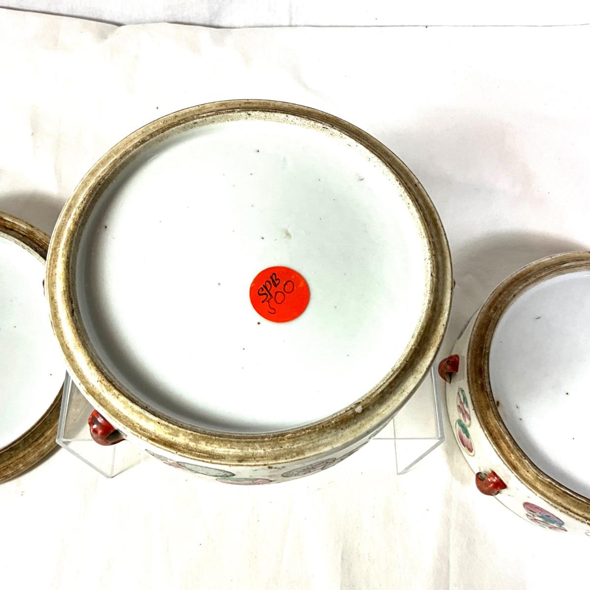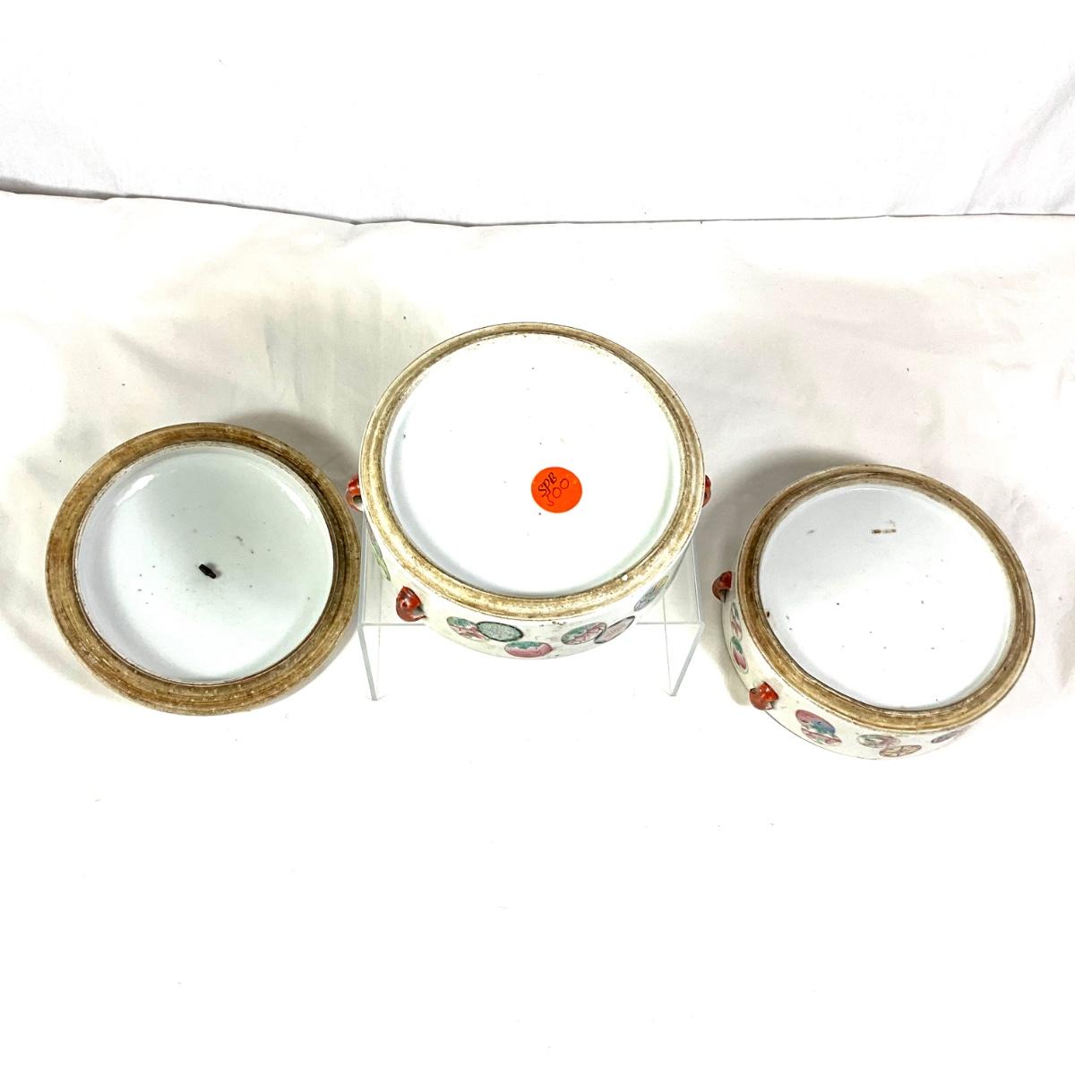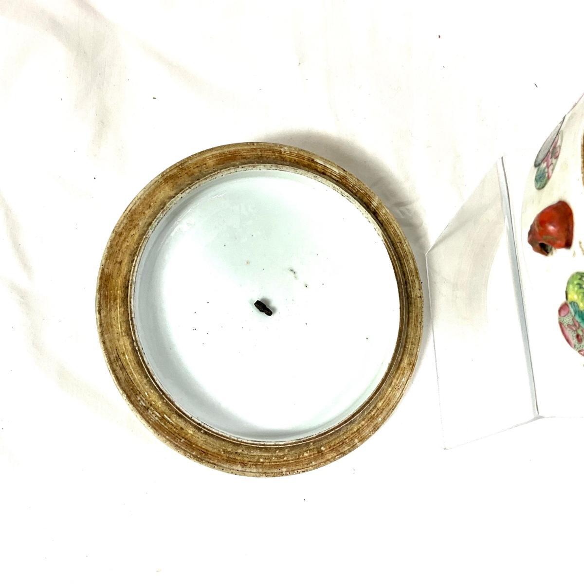 The lid has a metal pull on the top and all of the pieces are in good condition