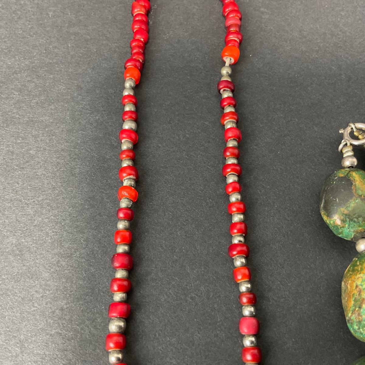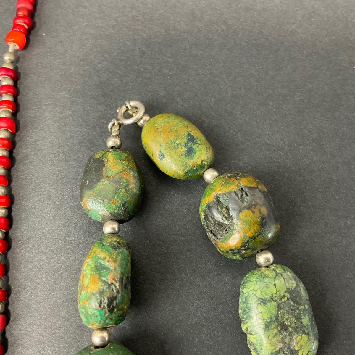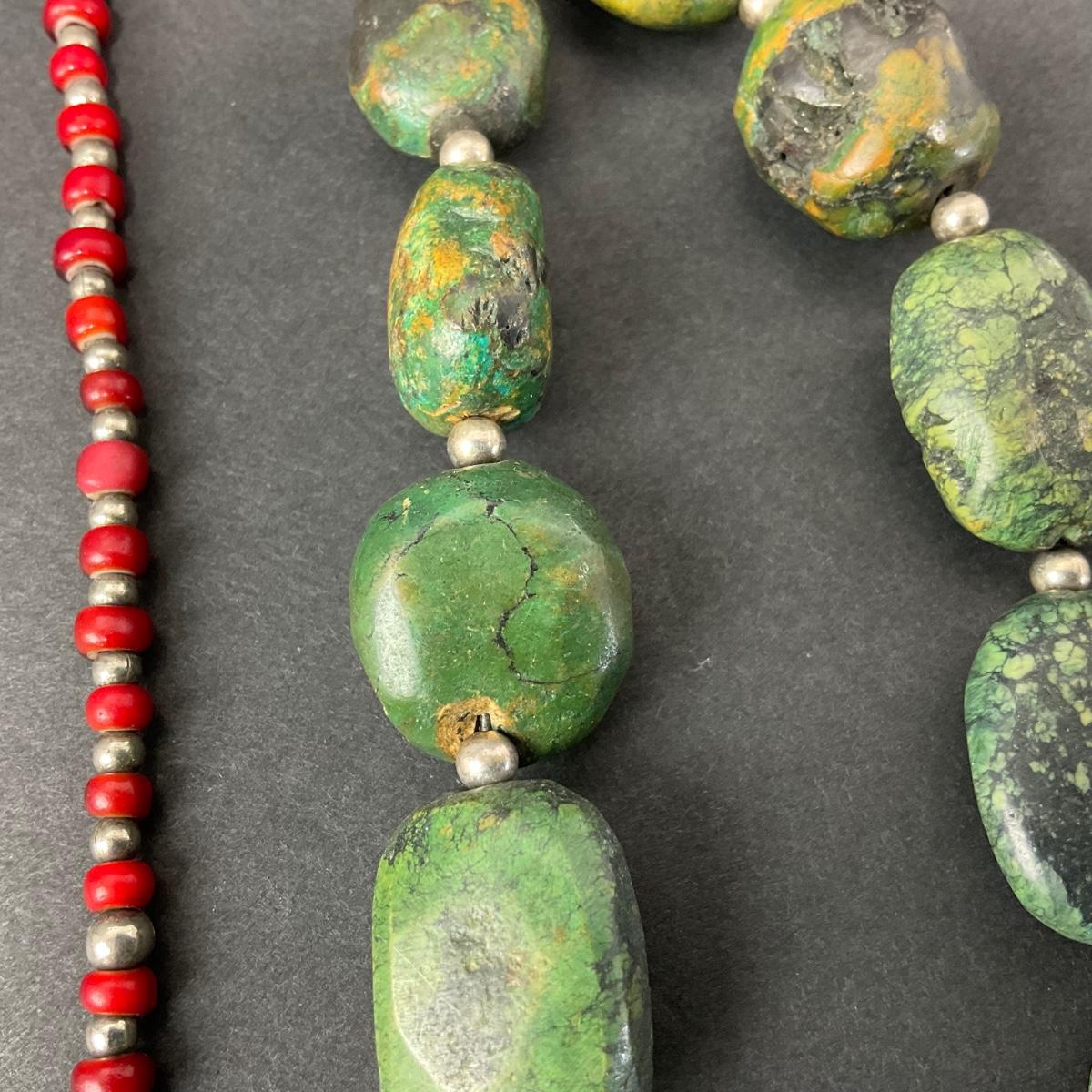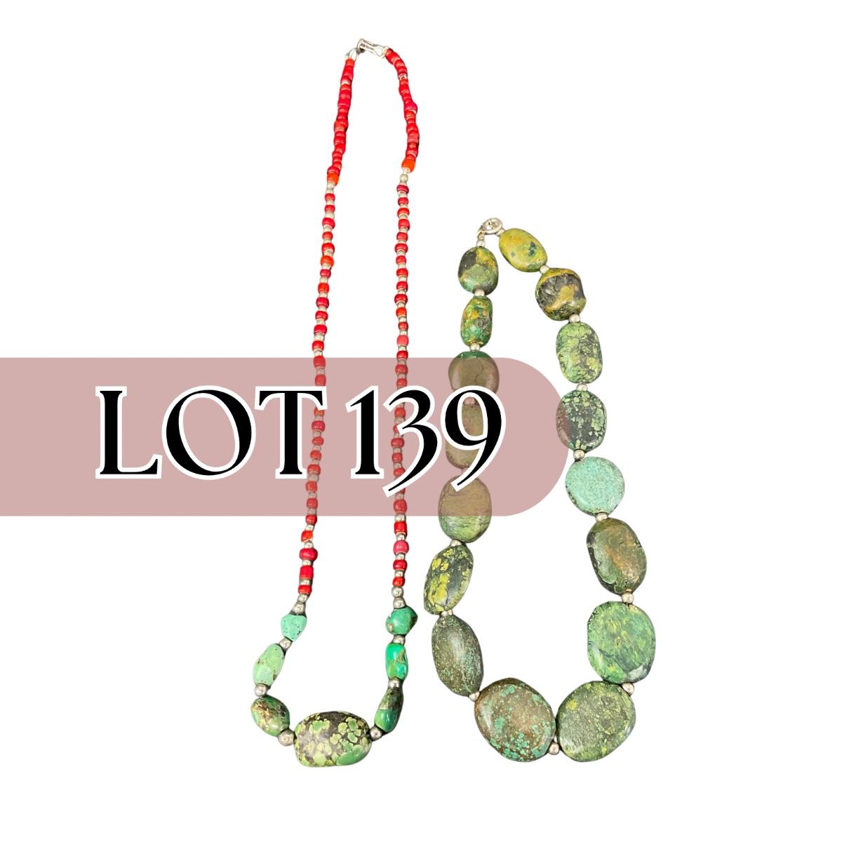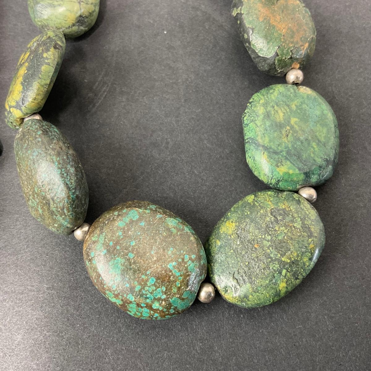 Two unique polished stone necklaces. Please see photos for details and condition. Any condition statement is given as a courtesy to a client, is an opinion, and should not be treated as a statement of fact. Reference to condition written, oral or within a condition report shall not be regarded as a full account of condition and may not include all defects, alterations, or restorations. Absence of a condition report does not imply a lot is flawless or lacking imperfections or damage. Katherine’s Auction & Appraisal Service shall have no responsibility for any error or omission. Returns shall not be accepted on the basis of condition. ::: Shipping is available on this lot. If you require shipping you must let us know at the close of the auction. We will coordinate with you after the item has been won. Shipping fees will include insurance up to or exceeding the value of all items being mailed. If you have any questions regarding this lot please contact the auctioneer either via this website, by direct email or by phone. PICK UP TIMES and other important information can be found in the TERMS and DESCRIPTION of the auction. Please take a look for pertinent information. Thanks!