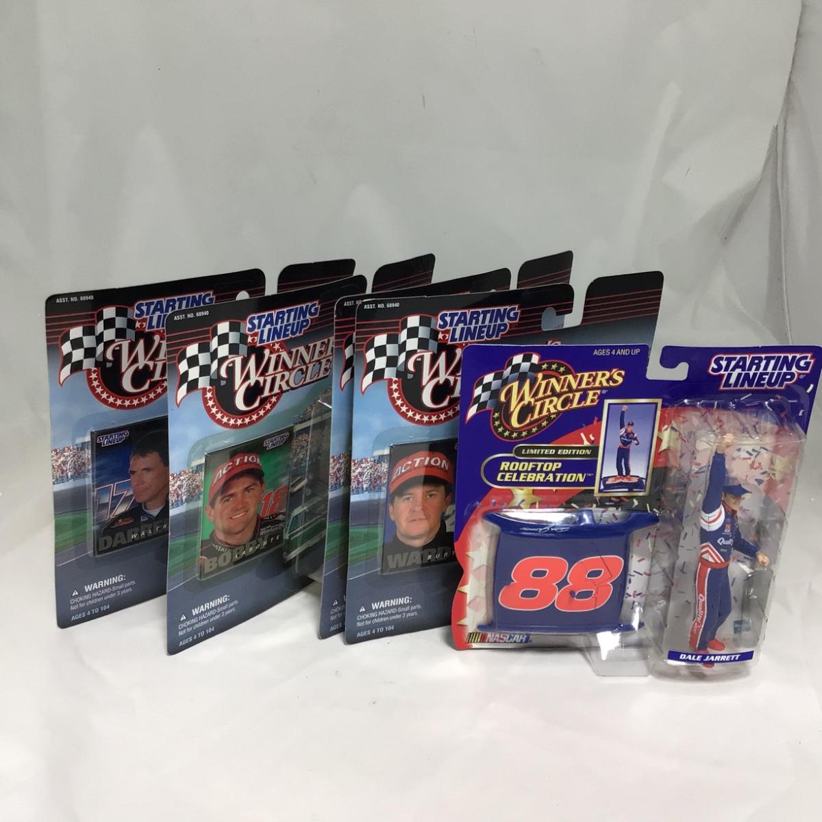 Five Nascar Starting Lineup Winners Circle figures. Please see photos for details and condition. ::: Shipping is available on this lot. If you require shipping you must let us know at the close of the auction. We will coordinate with you after the item has been won. Shipping fees will include insurance up to or exceeding the value of all items being mailed. If you have any questions regarding this lot please contact the auctioneer either via this website, by direct email or by phone. PICK UP TIMES and other important information can be found in the TERMS and DESCRIPTION of the auction. Please take a look for pertinent information. Thanks!