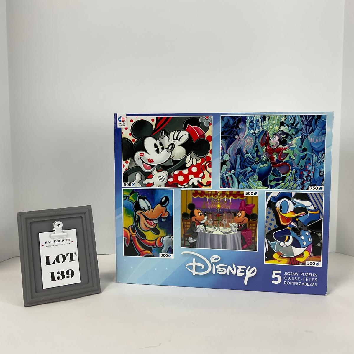 Five Mickey Mouse assorted jigsaw puzzles all appear to be in sealed original bags. Box does have damage. Puzzles appear to be complete order however not guaranteed. Please see photos for details and condition. Any condition statement is given as a courtesy to a client, is an opinion, and should not be treated as a statement of fact. Reference to condition written, oral or within a condition report shall not be regarded as a full account of condition and may not include all defects, alterations, or restorations. Absence of a condition report does not imply a lot is flawless or lacking imperfections or damage. Katherine’s Auction & Appraisal Service shall have no responsibility for any error or omission. Returns shall not be accepted on the basis of condition. ::: Shipping is available on this lot. If you require shipping you must let us know at the close of the auction. We will coordinate with you after the item has been won. Shipping fees will include insurance up to or exceeding the value of all items being mailed. If you have any questions regarding this lot please contact the auctioneer either via this website, by direct email or by phone. PICK UP TIMES and other important information can be found in the TERMS and DESCRIPTION of the auction. Please take a look for pertinent information. Thanks!