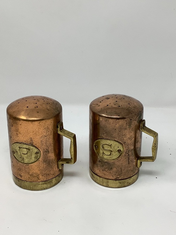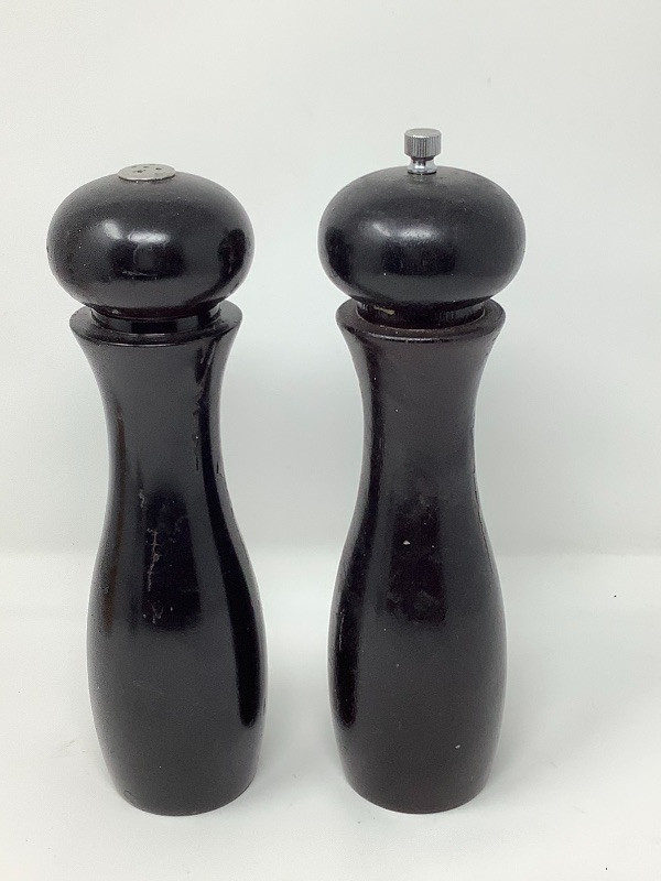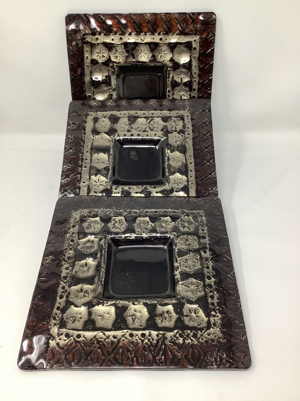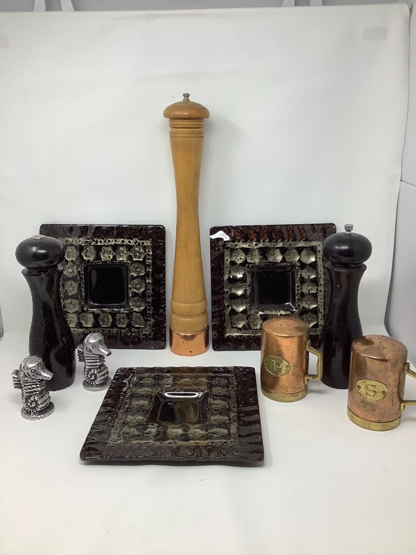 Salt and pepper shakers with 3 original glass slumped trays. Tallest shaker is 15”