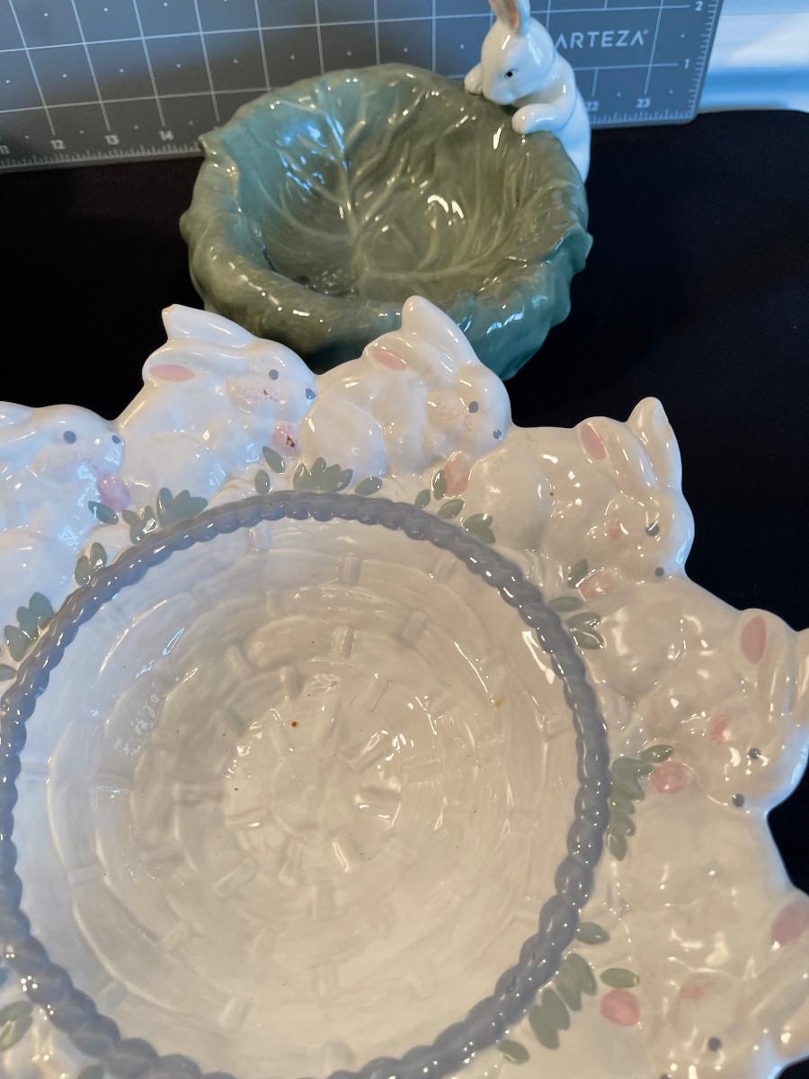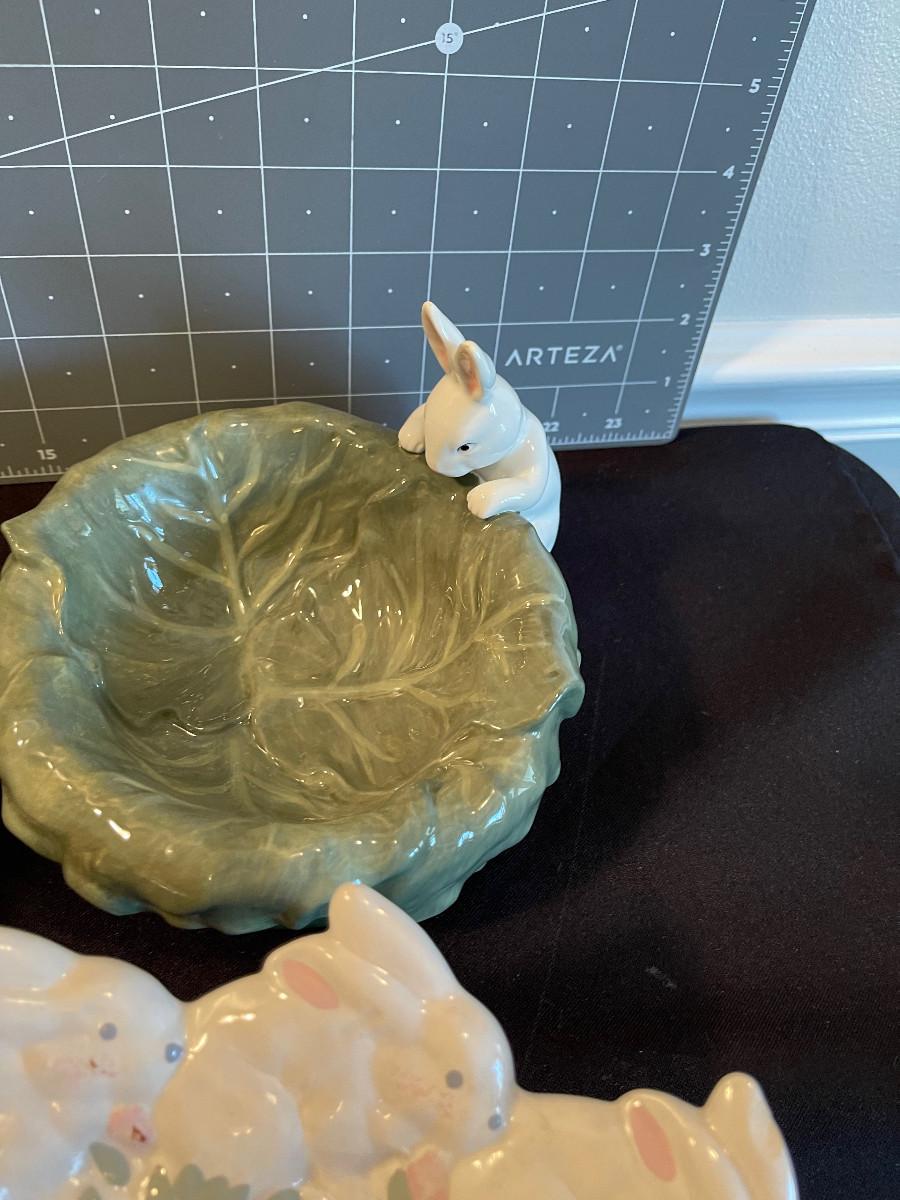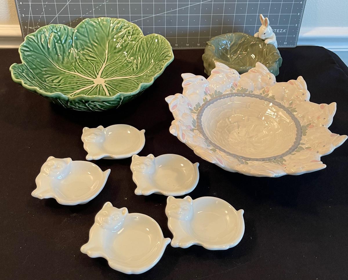 #139 Several Bunny Bowls, Cabbage Leaf Kitty Cat Salts