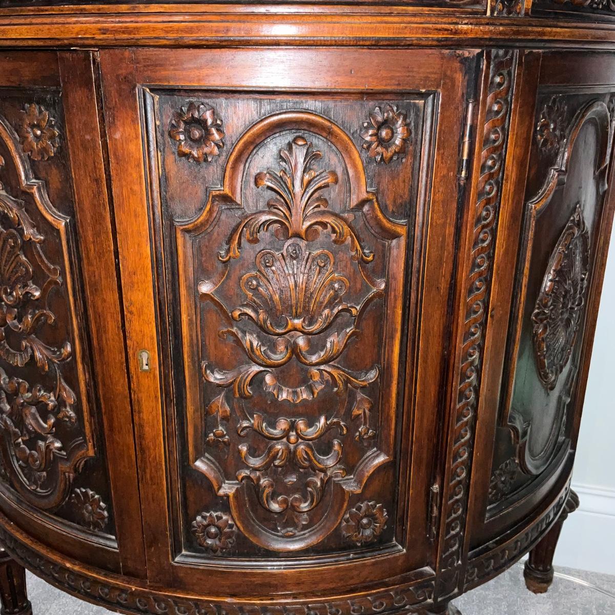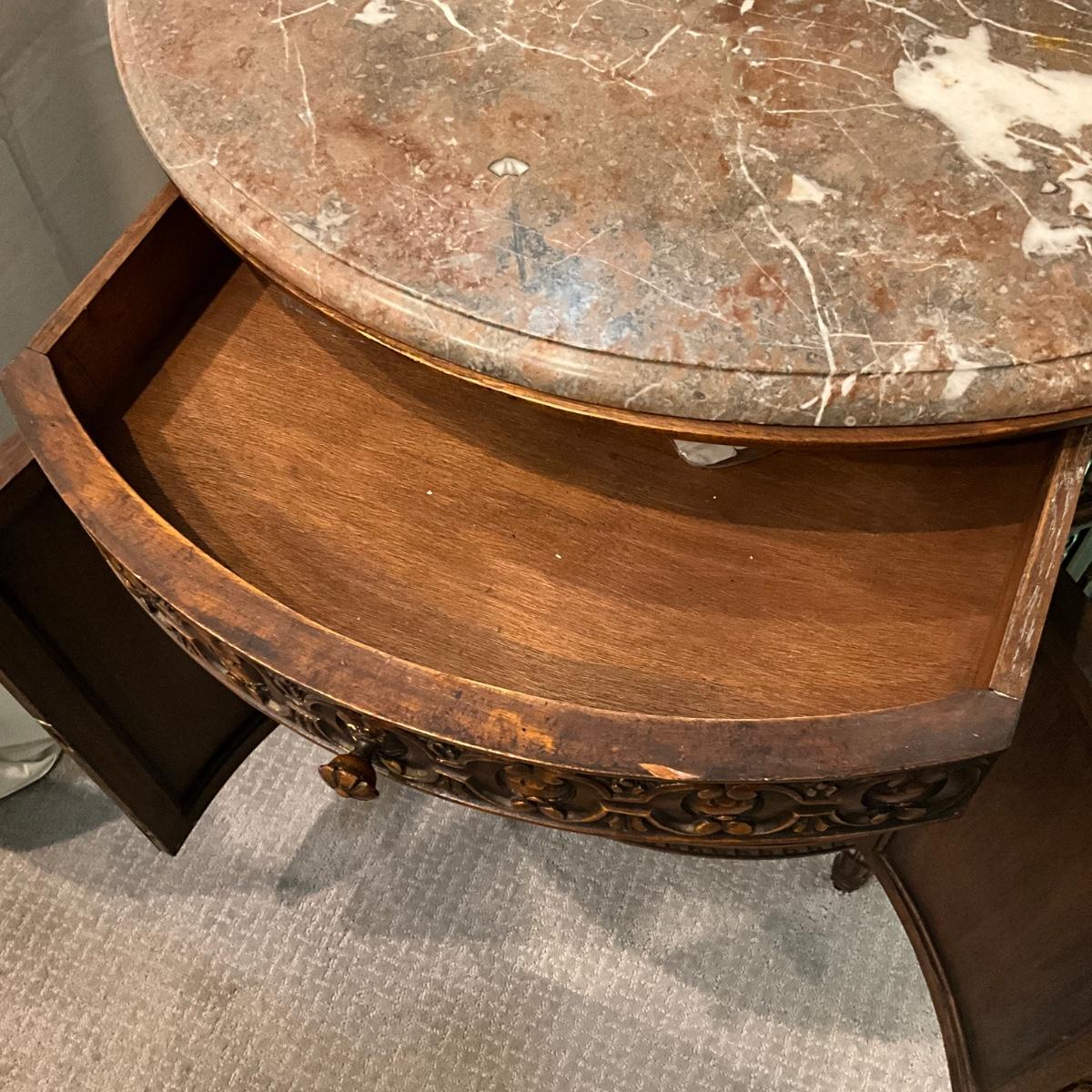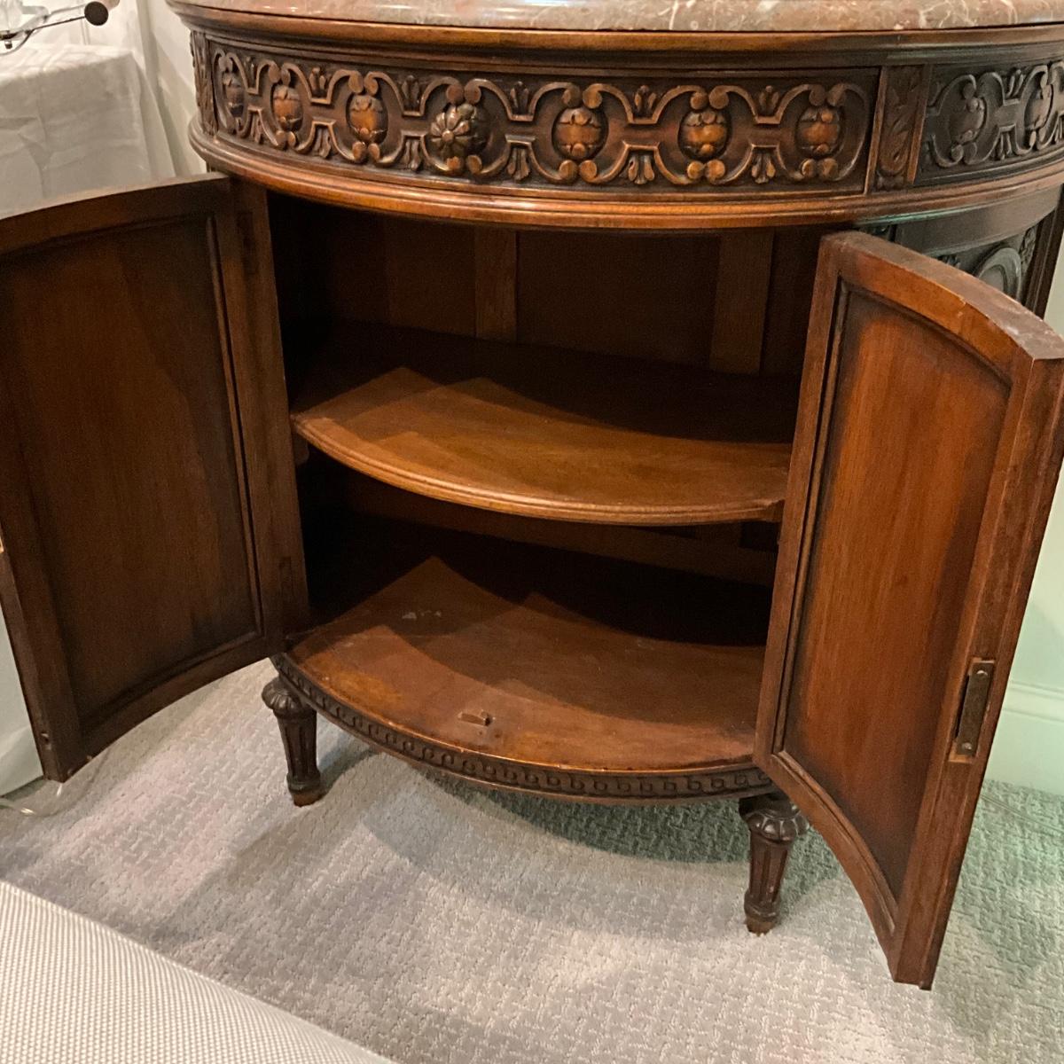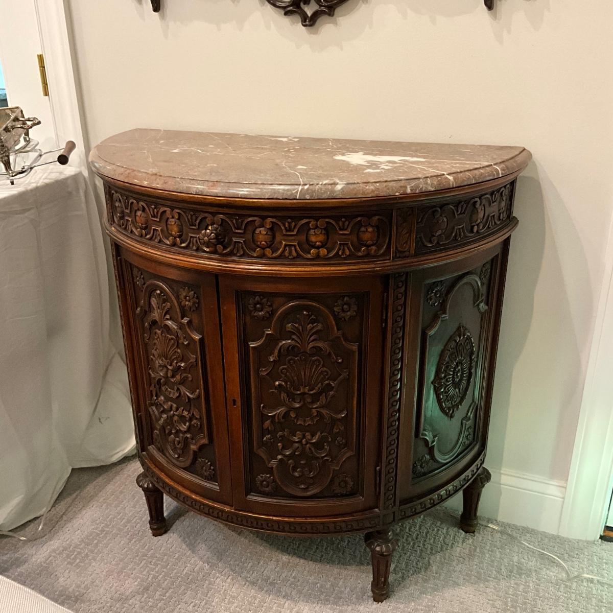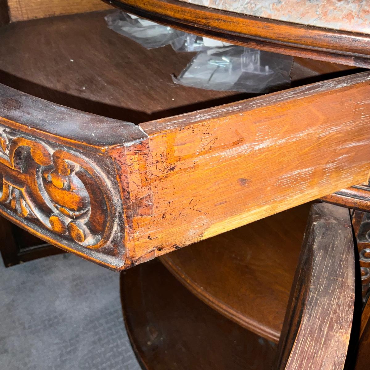 139 Vintage Marble Top Carved Wooden Server/Console Table