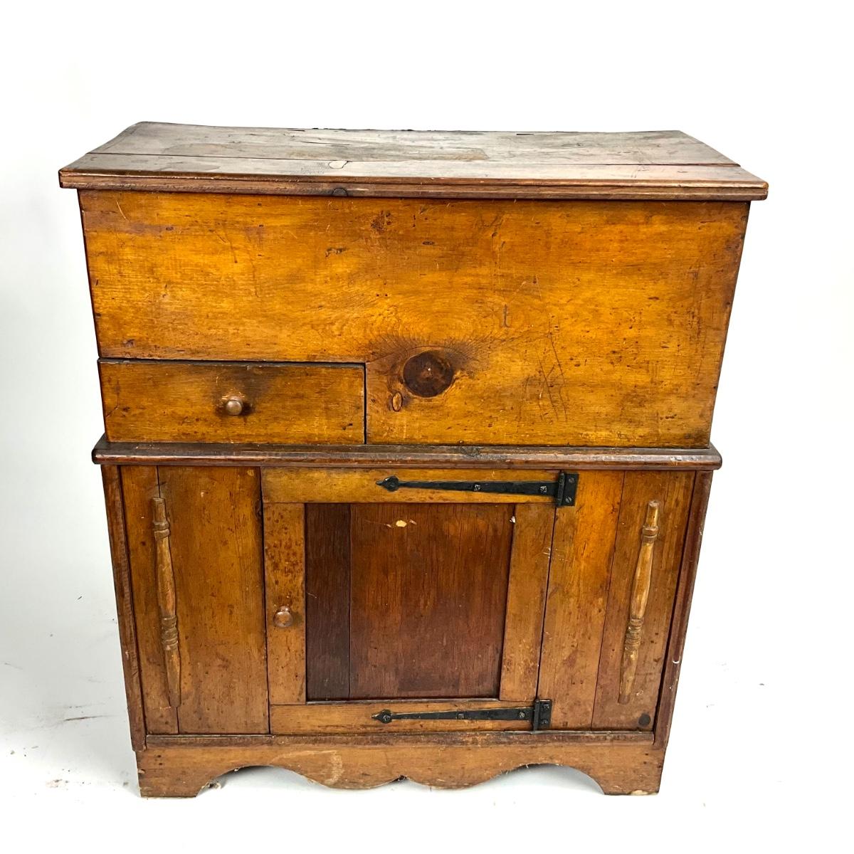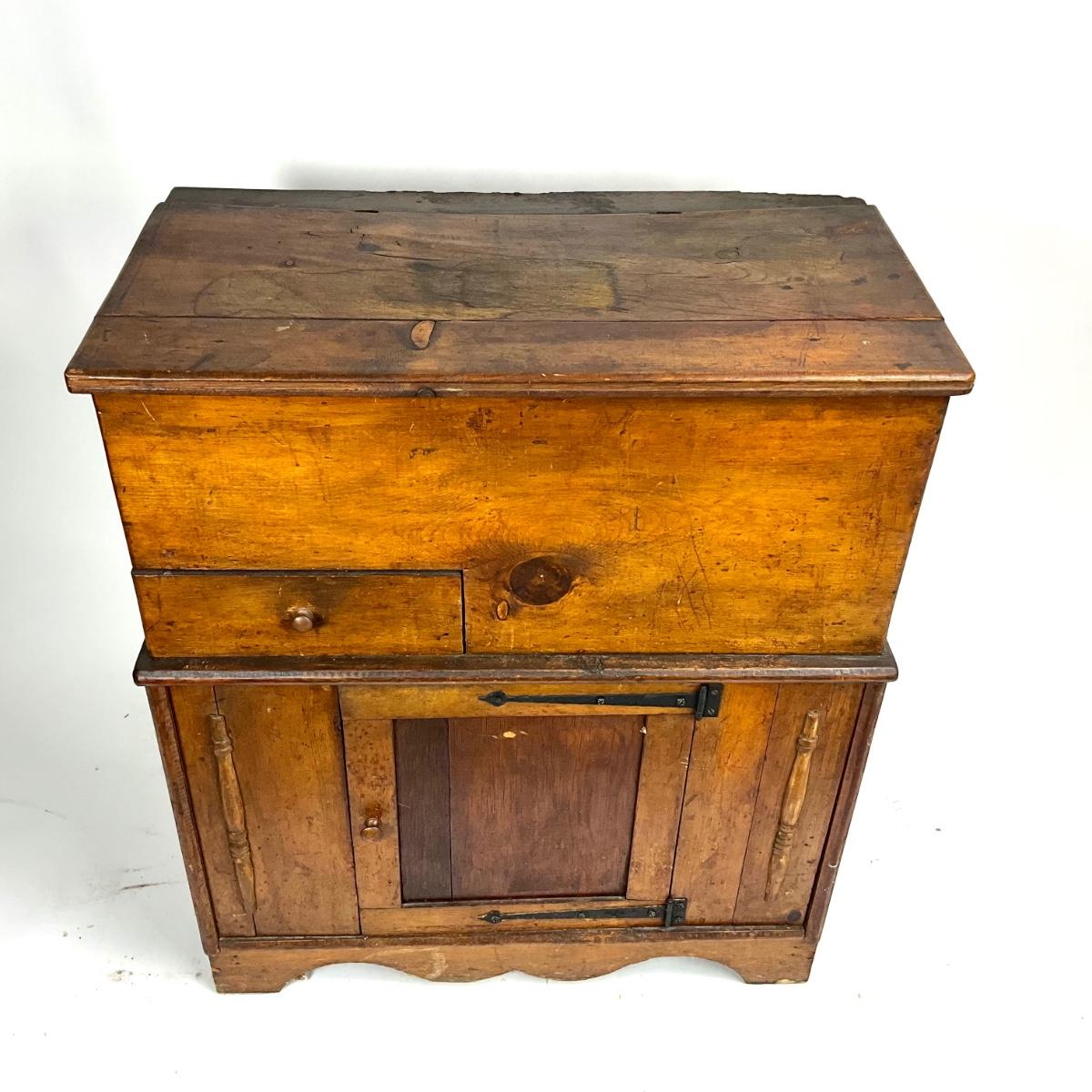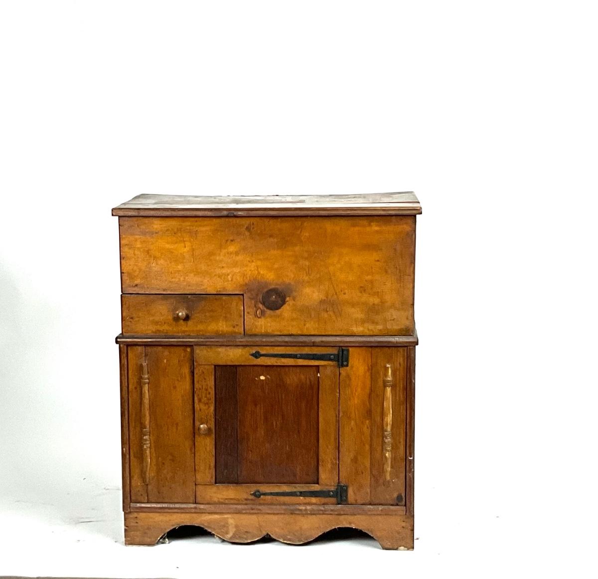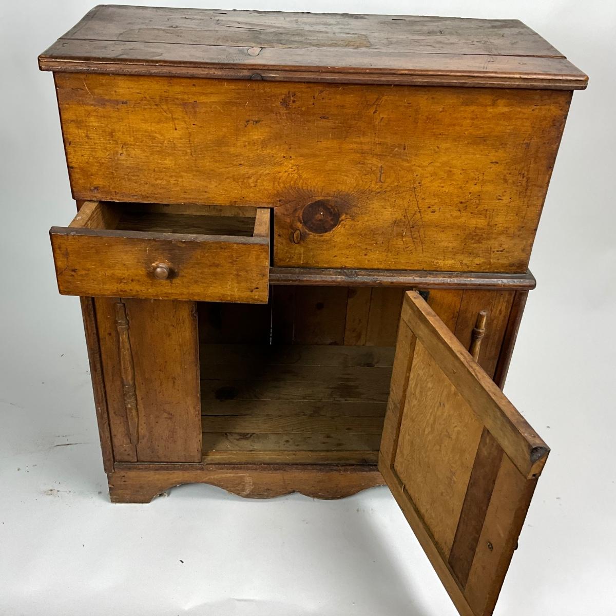1395 Antique Flip Top Pine Wood Washstand Commode