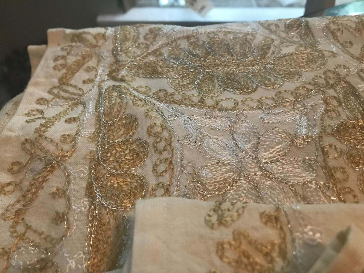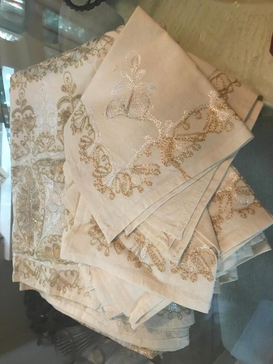 GOLD/SILVER EMBELLISHED TABLE CLOTH AND 12 NAPKINS