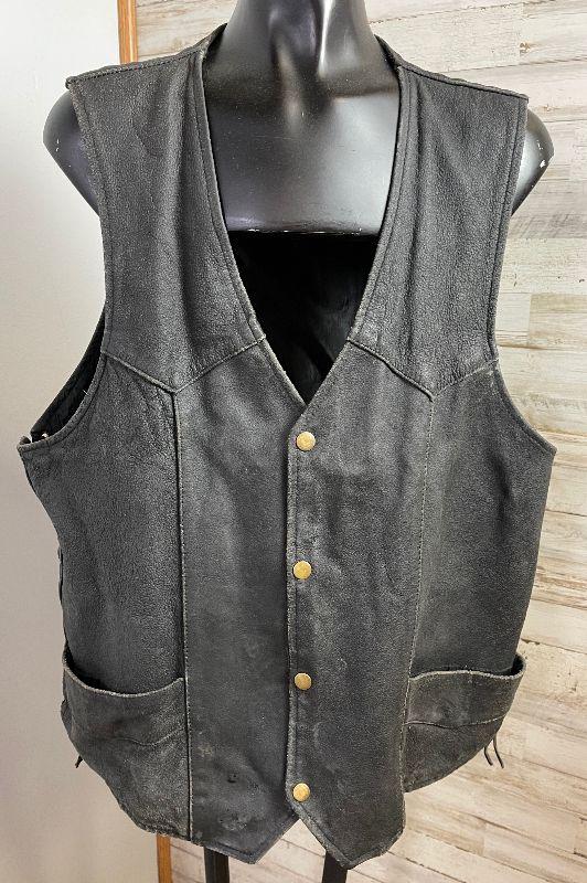 #14 Black Leather Biker Vest by Highway Hawks Brand