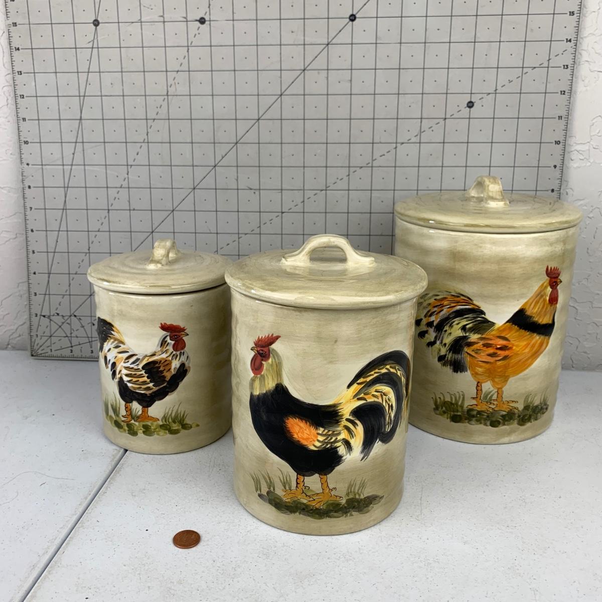 #14 Calderone Hand Painted Rooster Kitchen Containers