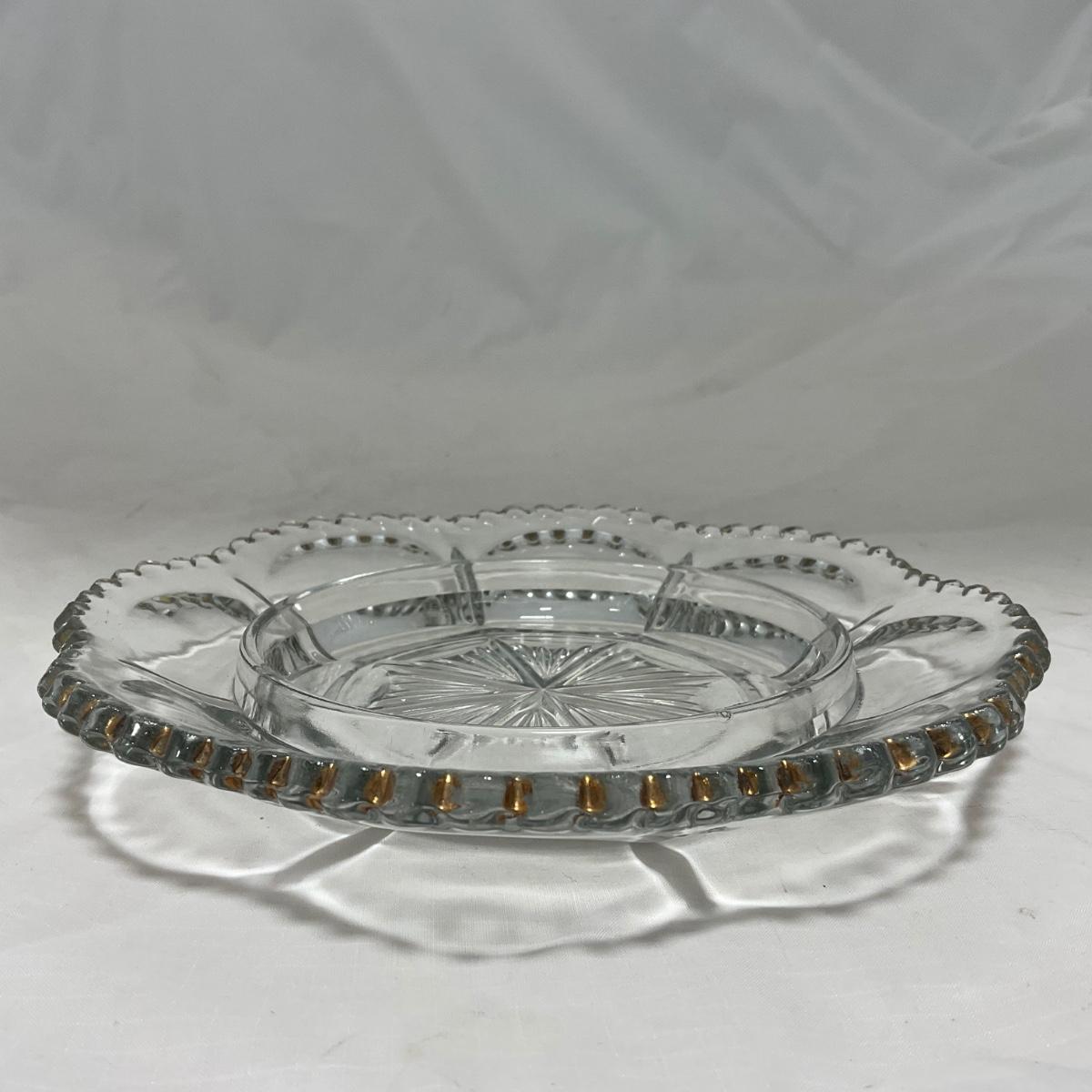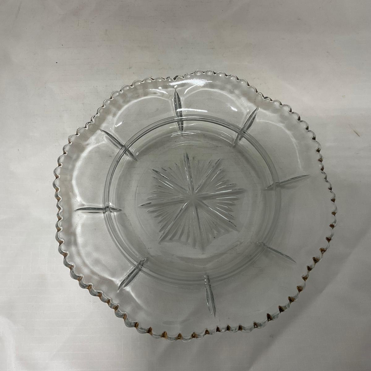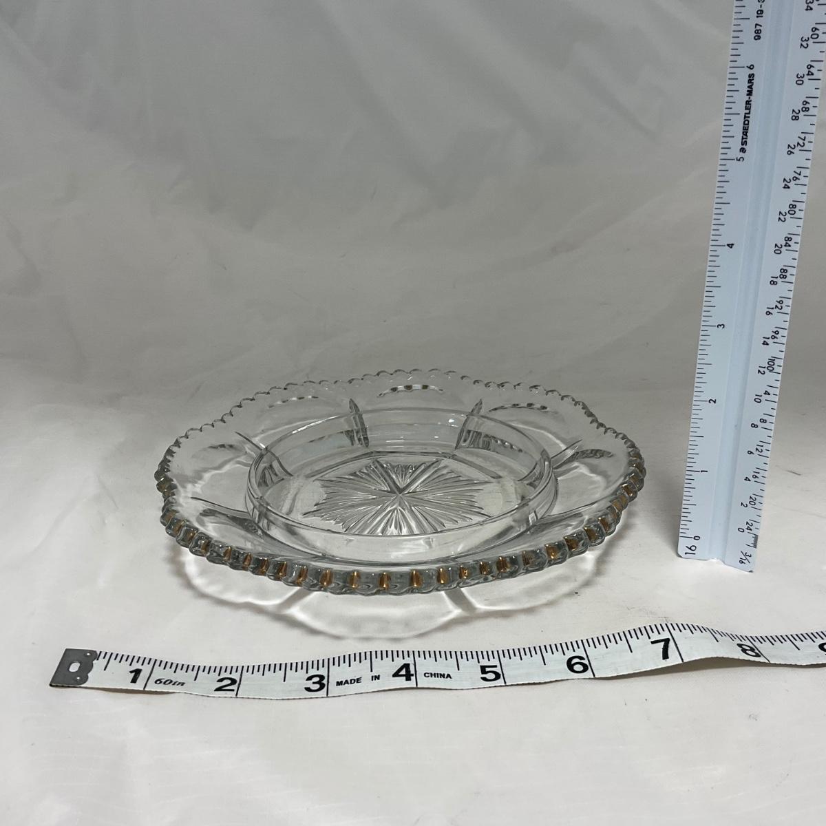 Clear pressed glass covered butter dish with worn gold accents. This piece does have worn and missing gold paint. Please see photos for details and condition. ::: Shipping is available on this lot. If you require shipping you must let us know at the close of the auction. We will coordinate with you after the item has been won. Shipping fees will include insurance up to or exceeding the value of all items being mailed. If you have any questions regarding this lot please contact the auctioneer either via this website, by direct email or by phone. PICK UP TIMES and other important information can be found in the TERMS and DESCRIPTION of the auction. Please take a look for pertinent information. Thanks!