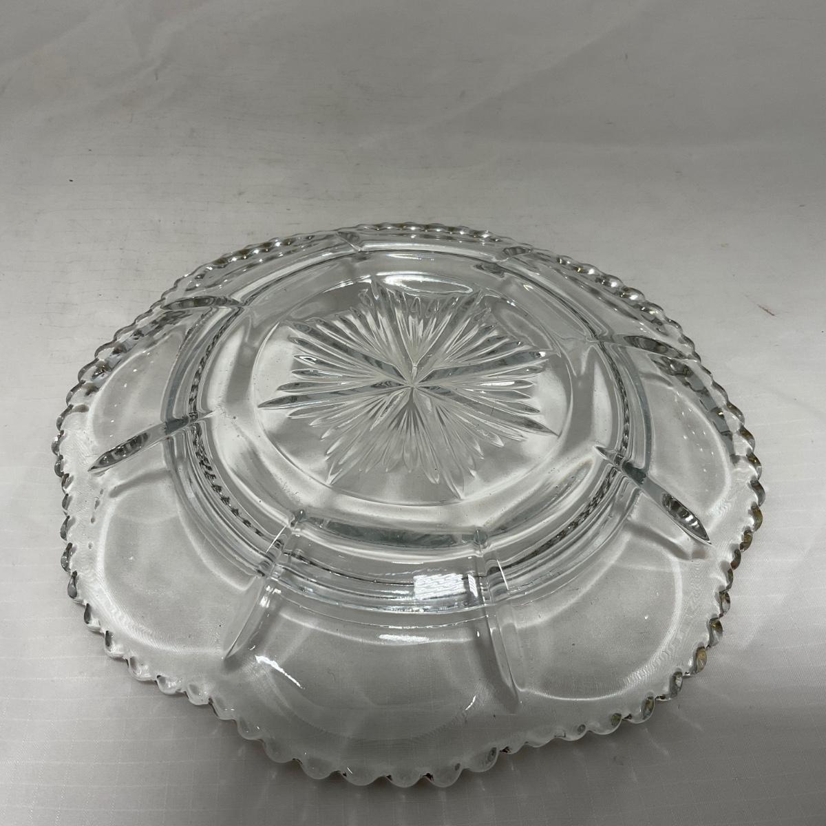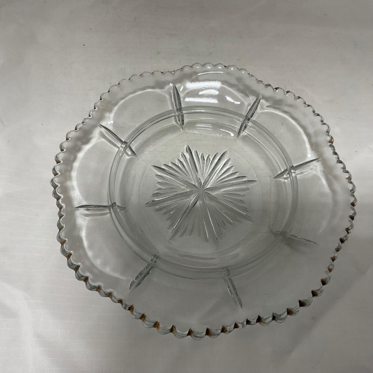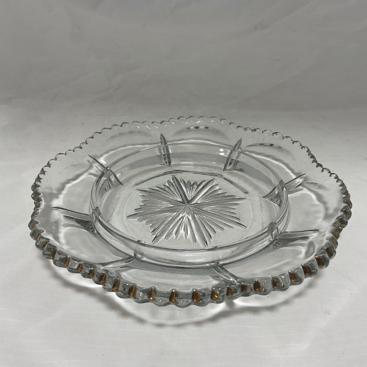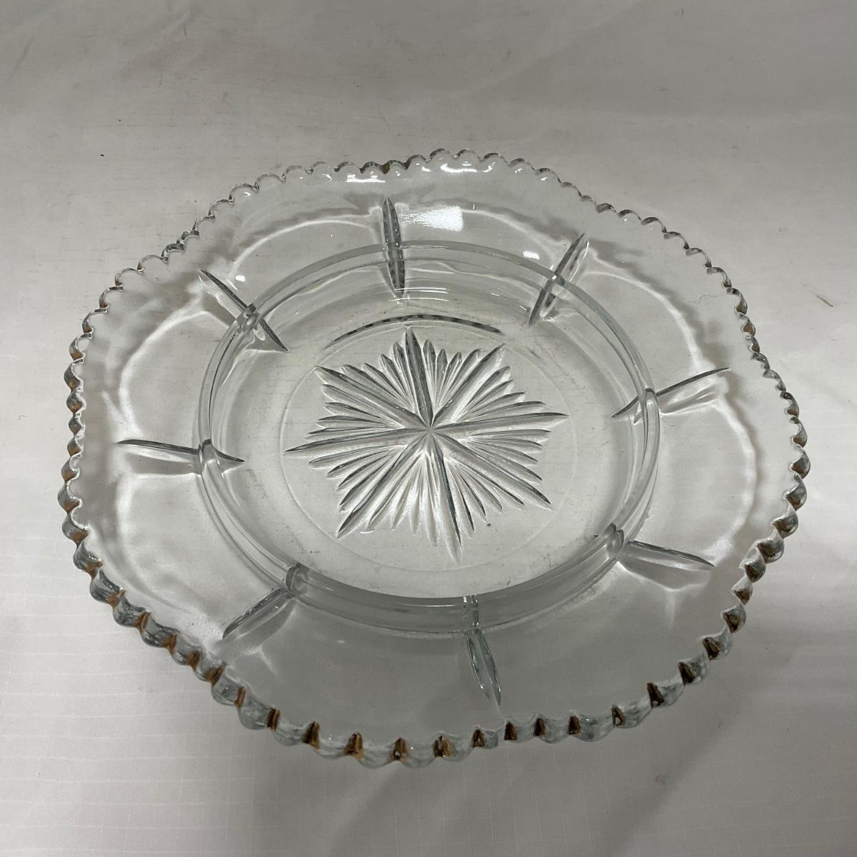 Clear pressed glass covered butter dish with worn gold accents. This piece does have worn and missing gold paint. Please see photos for details and condition. ::: Shipping is available on this lot. If you require shipping you must let us know at the close of the auction. We will coordinate with you after the item has been won. Shipping fees will include insurance up to or exceeding the value of all items being mailed. If you have any questions regarding this lot please contact the auctioneer either via this website, by direct email or by phone. PICK UP TIMES and other important information can be found in the TERMS and DESCRIPTION of the auction. Please take a look for pertinent information. Thanks!