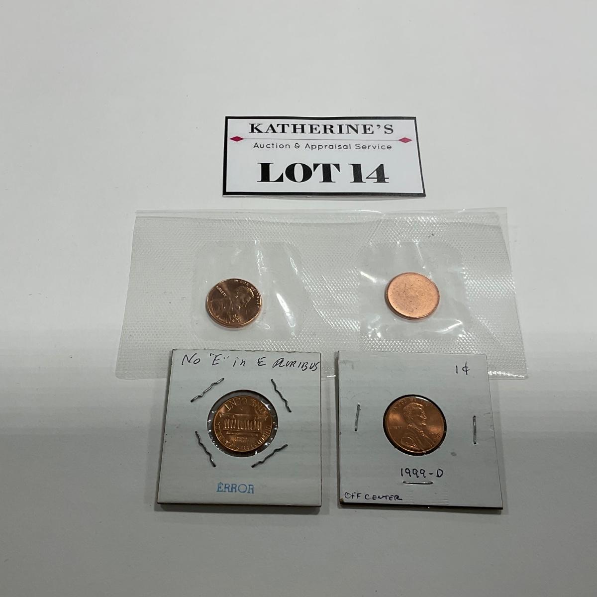 -14- COINS | Lincoln Error’s 1999-D Off Center Strike | 1973-D Weak “E” | Blank Planchette