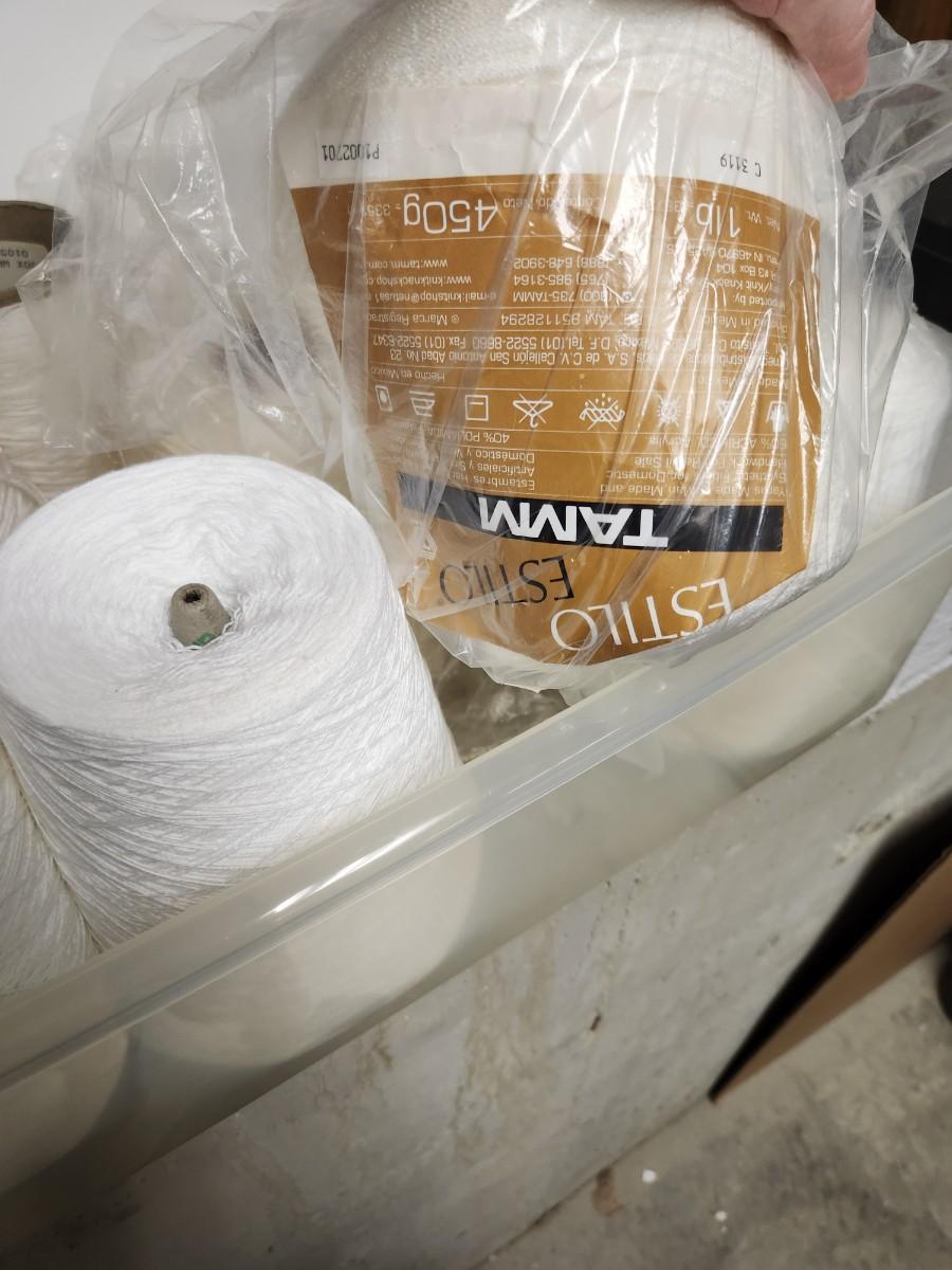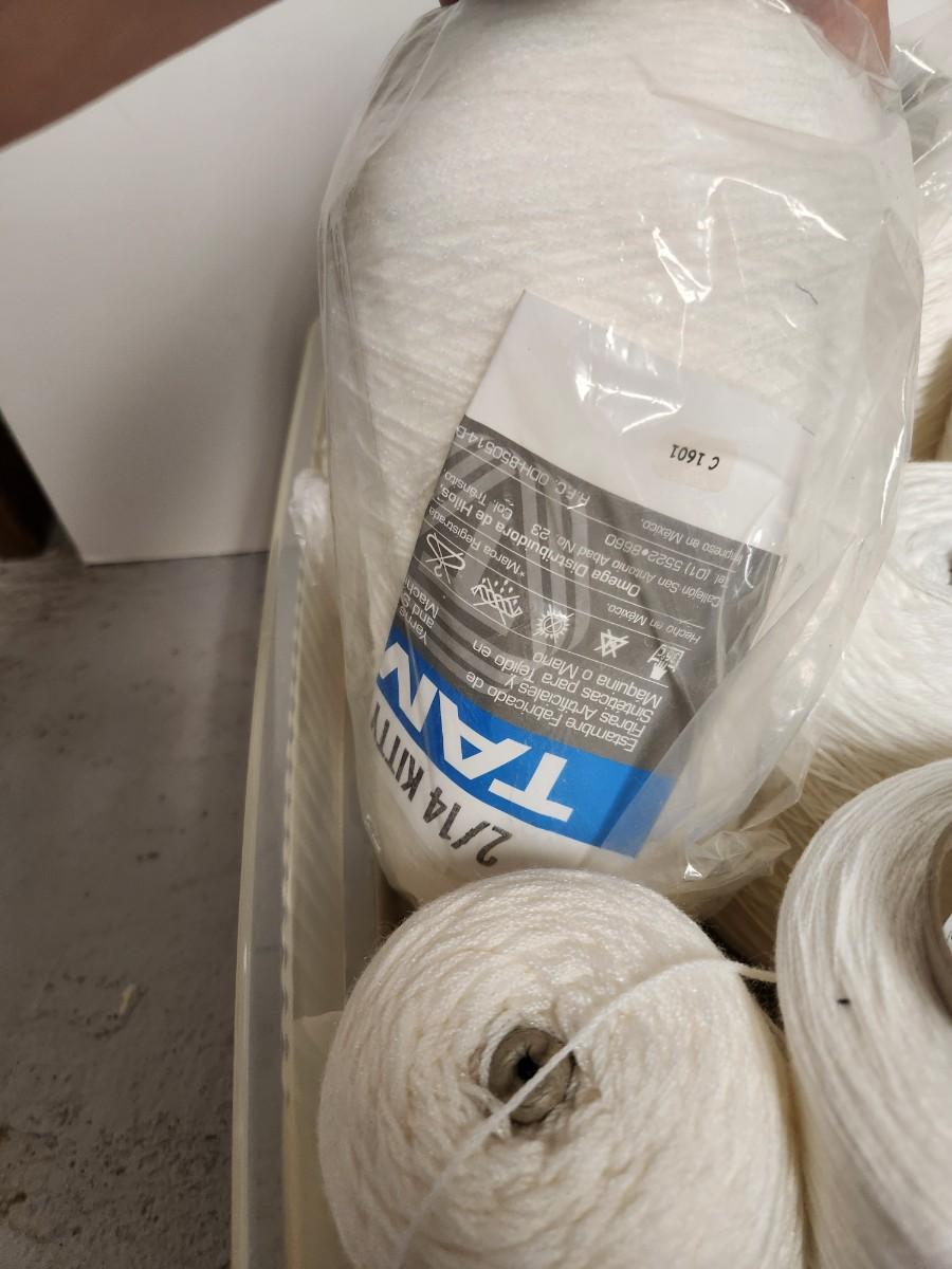14 cones of weaving yarn in shades of white