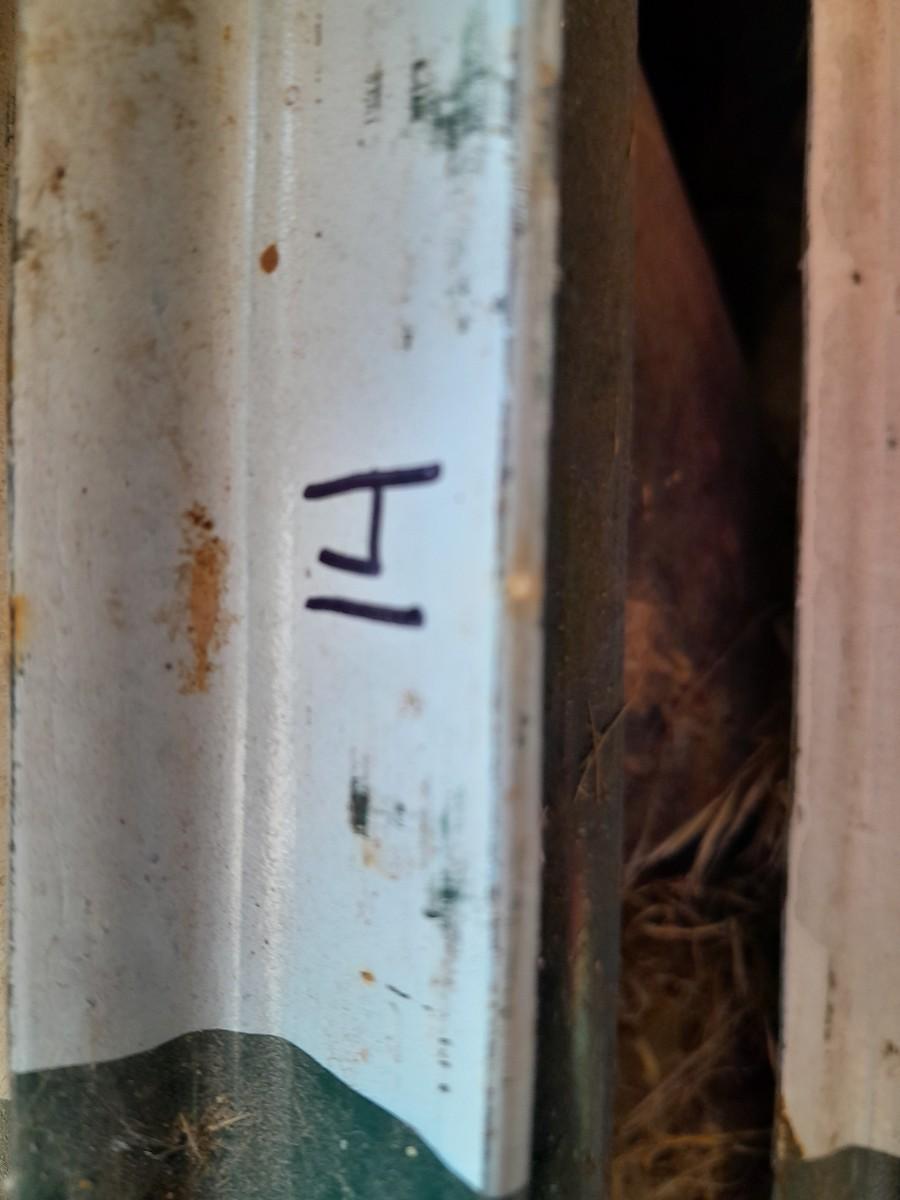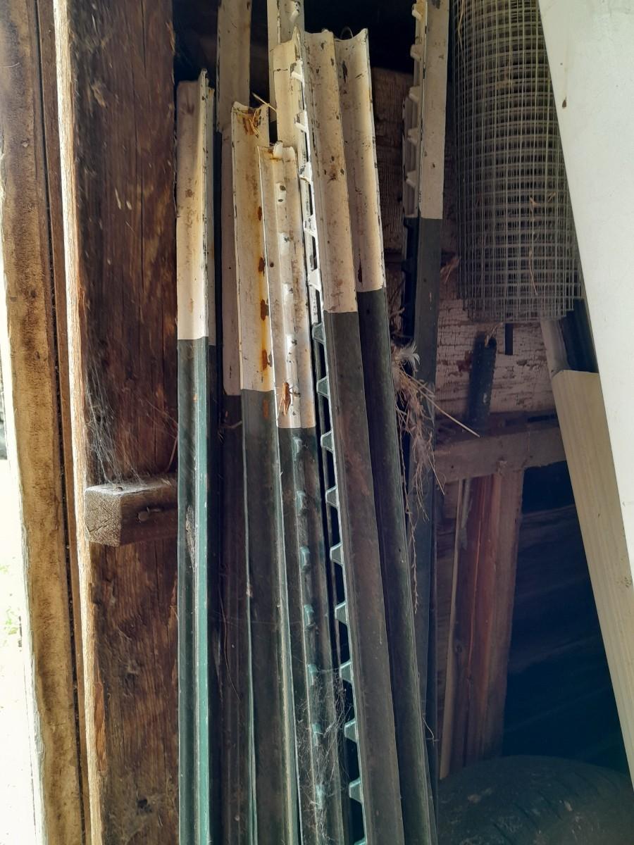 14 GREEN T-POSTS OF VARIOUS LENGTHS.