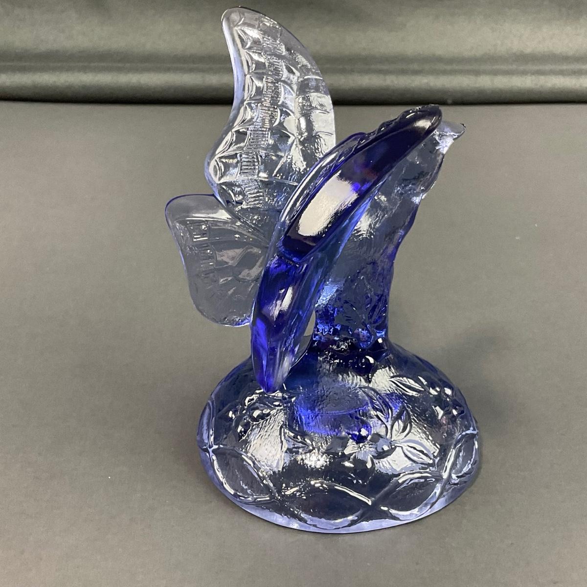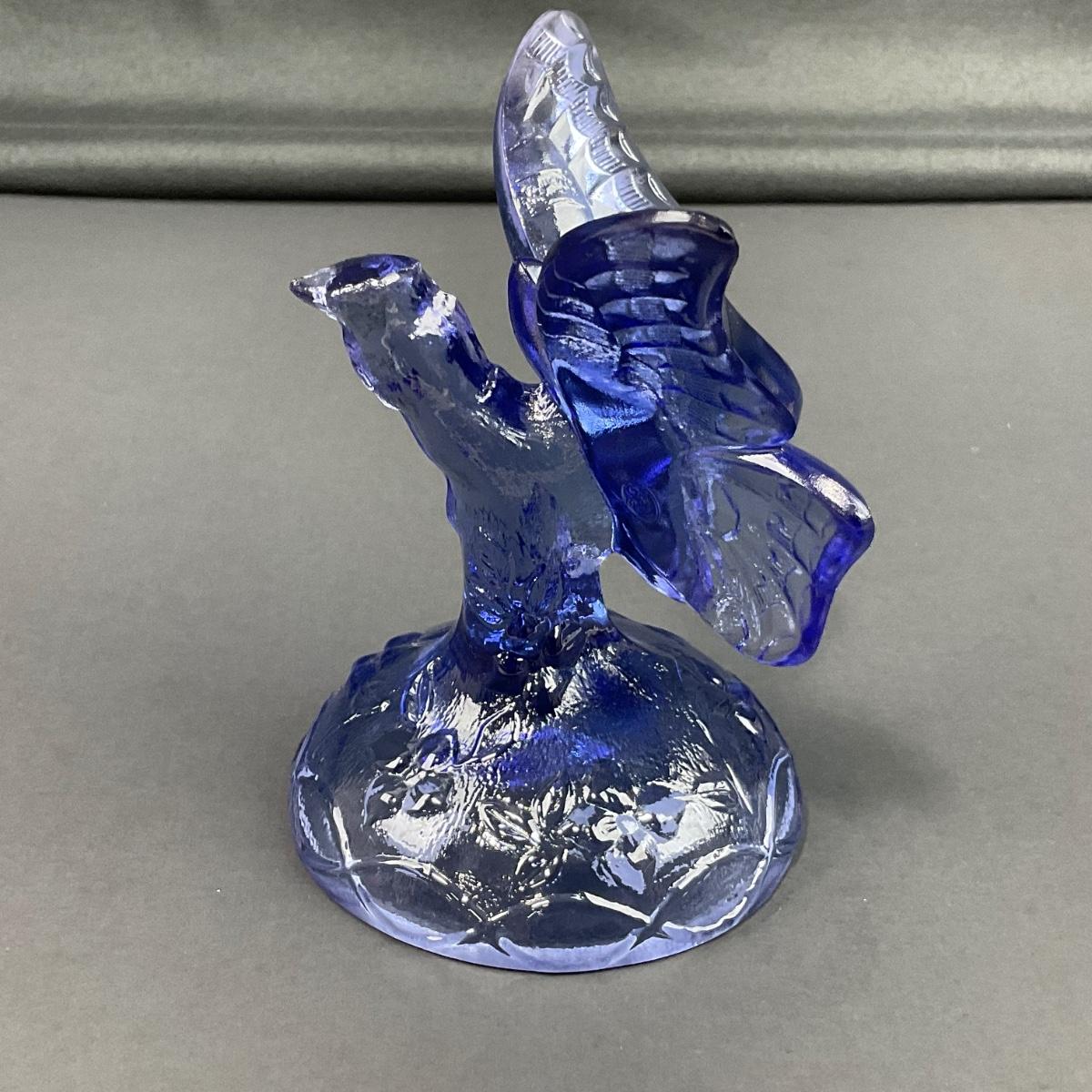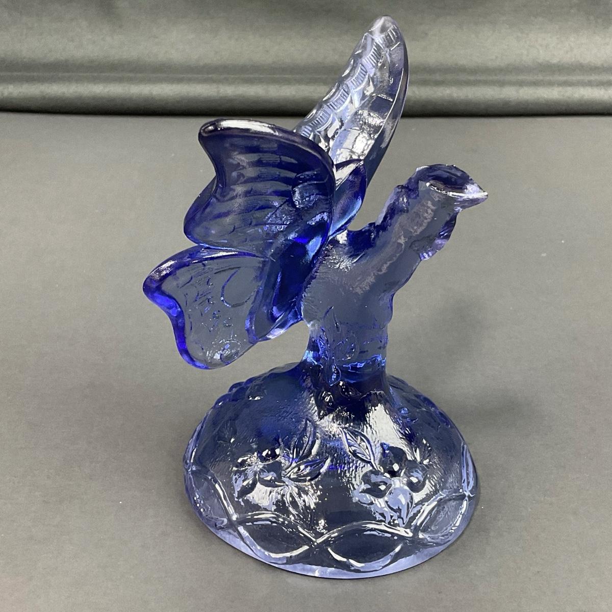-14- FENTON | Blue Art Glass Butterfly On Branch Figure | Marked