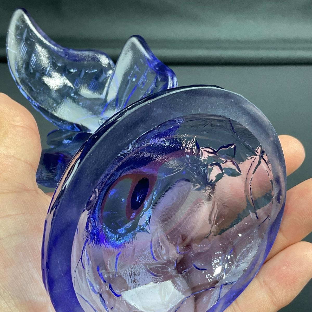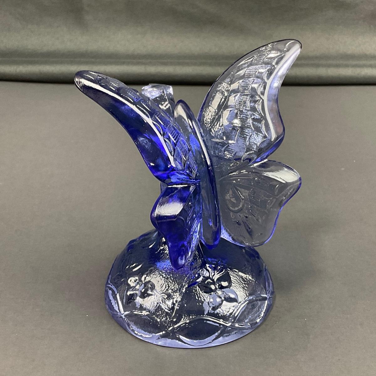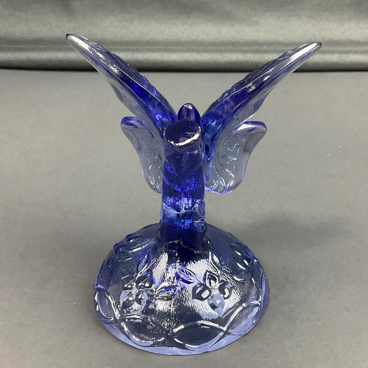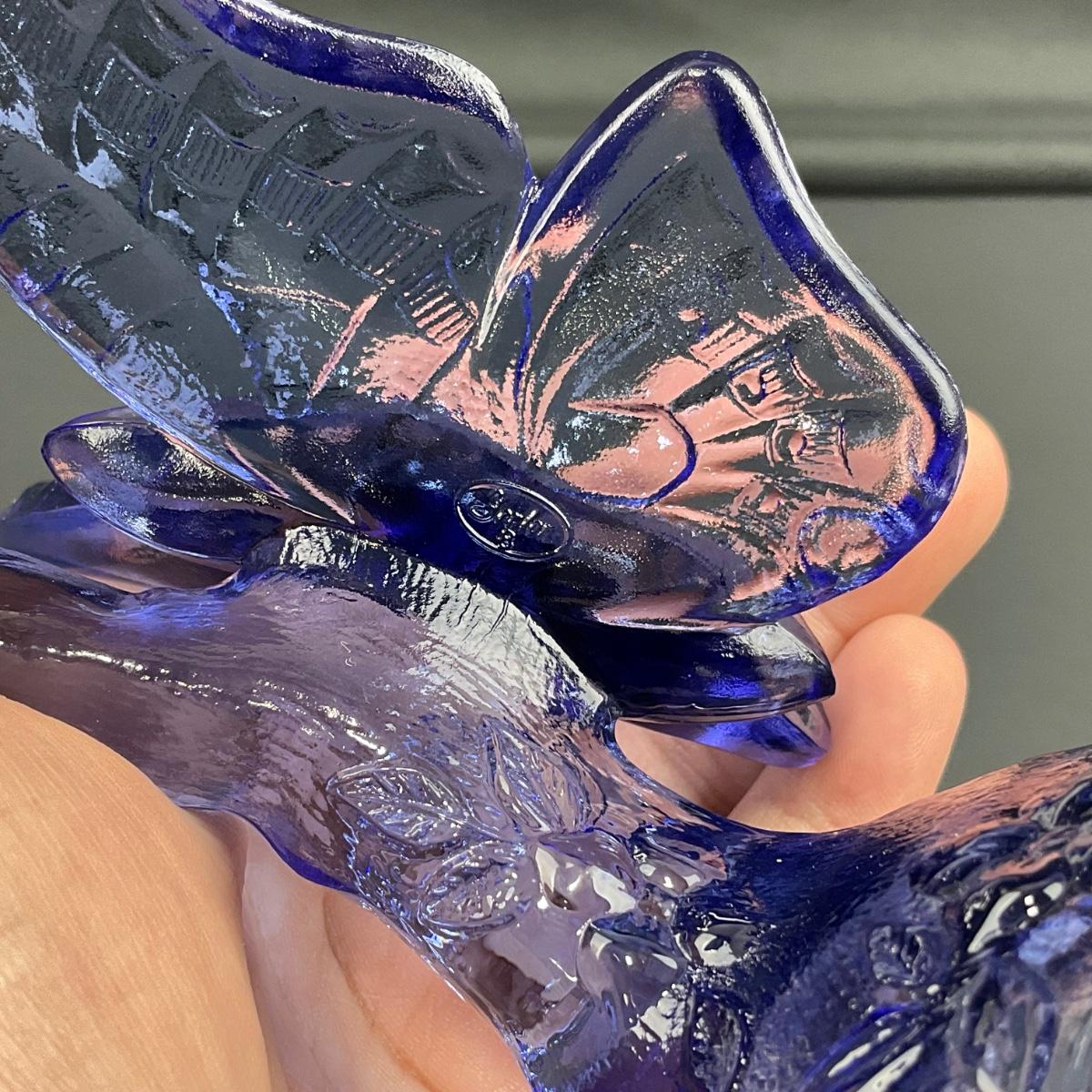 -14- FENTON | Blue Art Glass Butterfly On Branch Figure | Marked