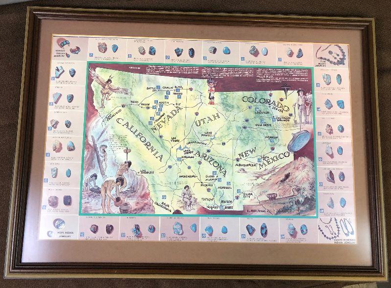 #14 Framed Indian Jewelry - Turquoise Map