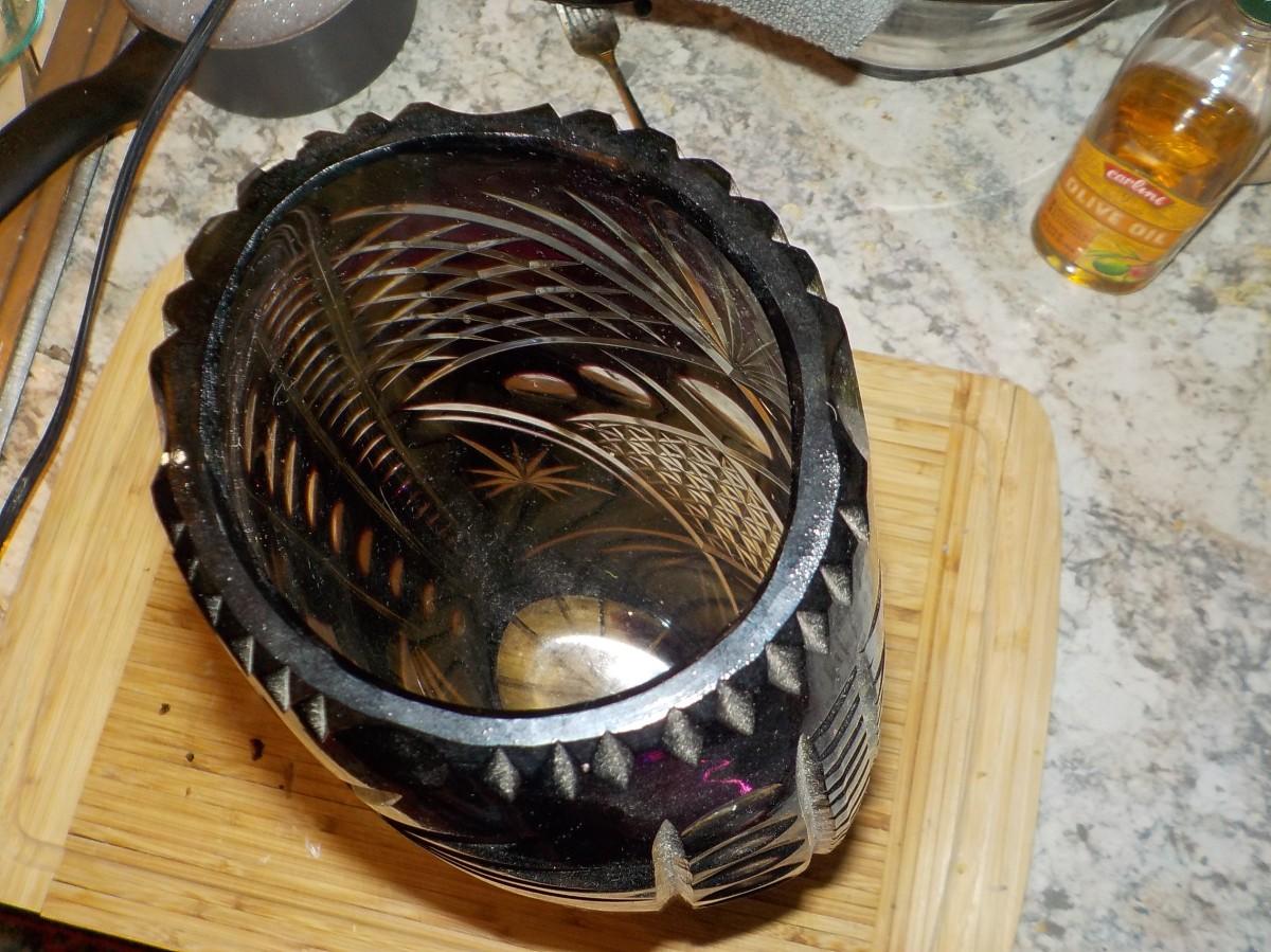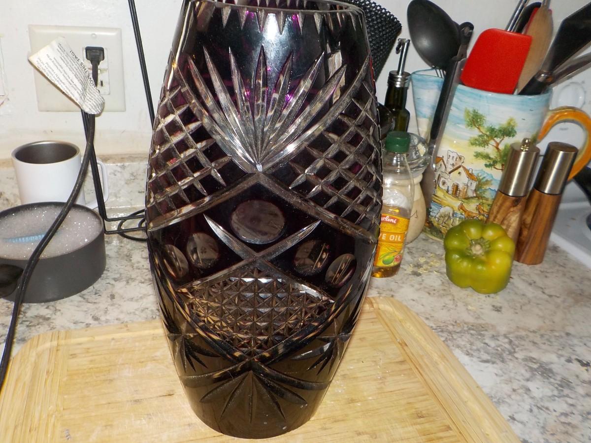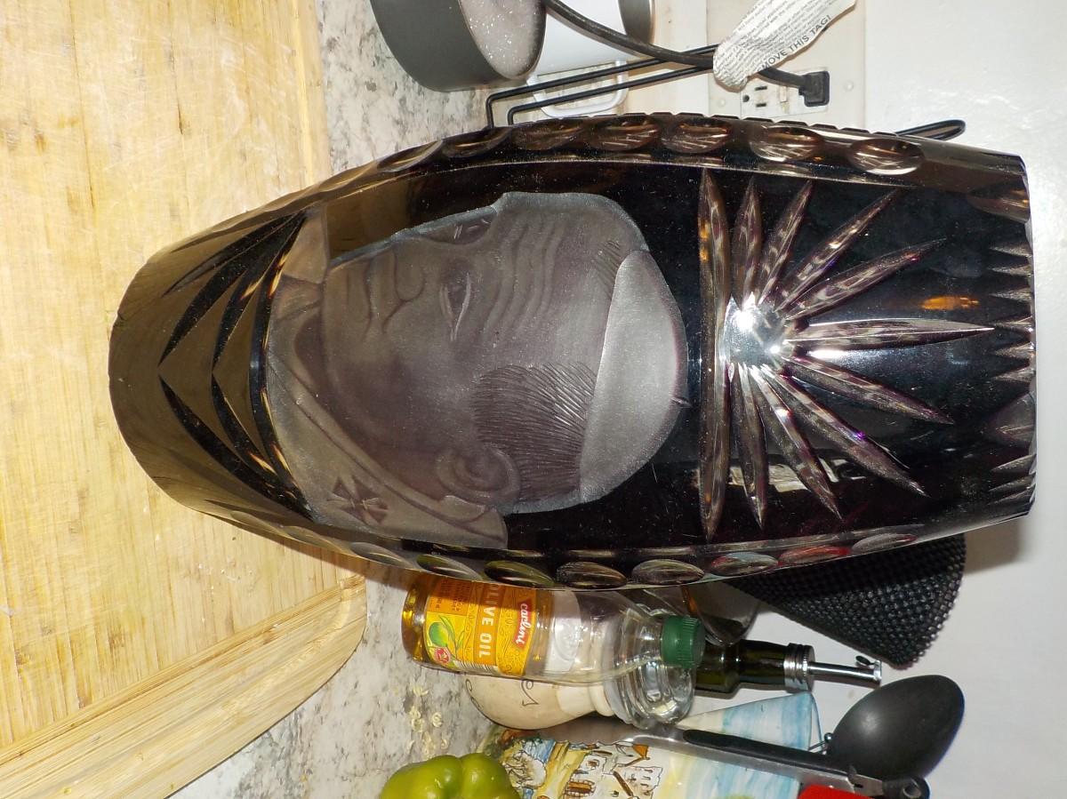 14 inch Cut Glass Vase with etch art of Pope Paul.