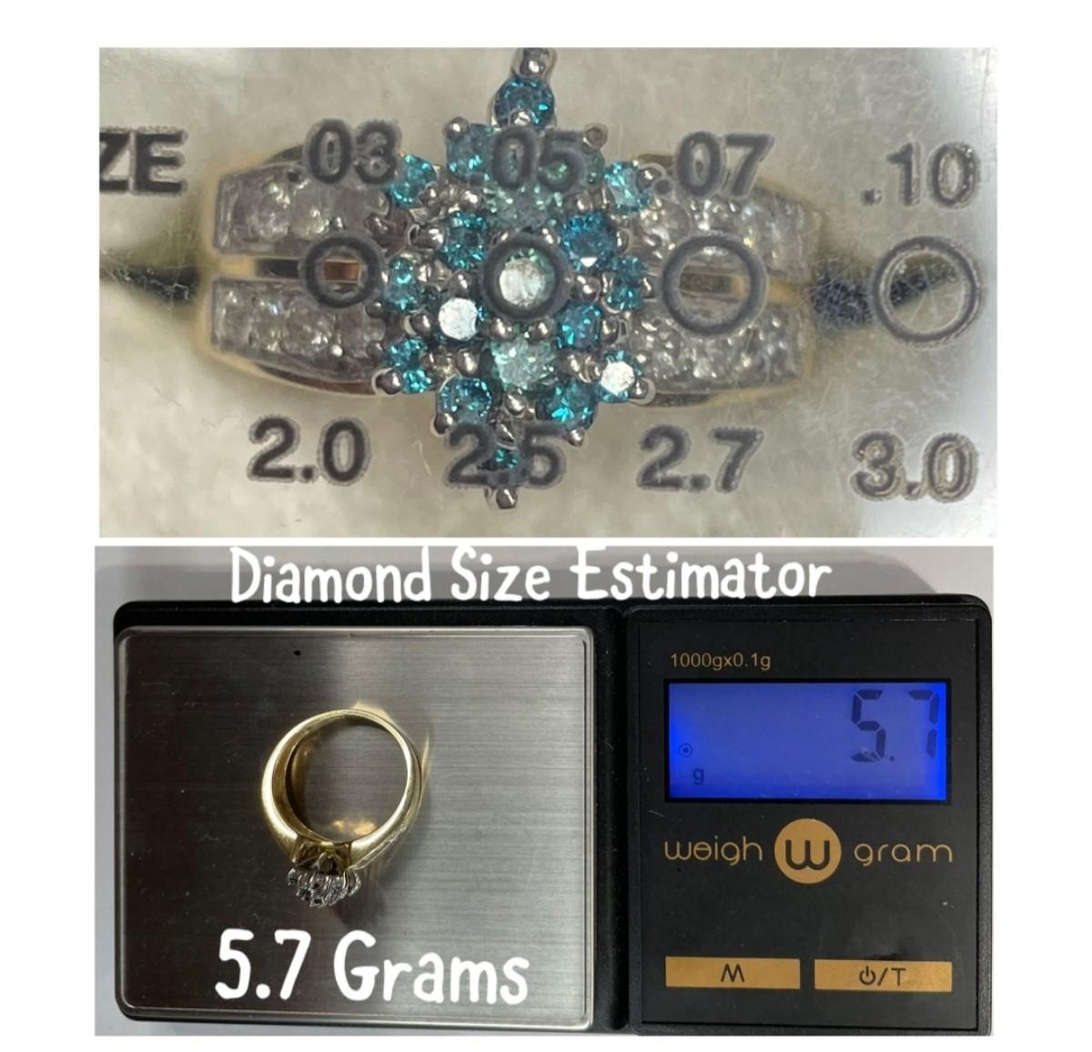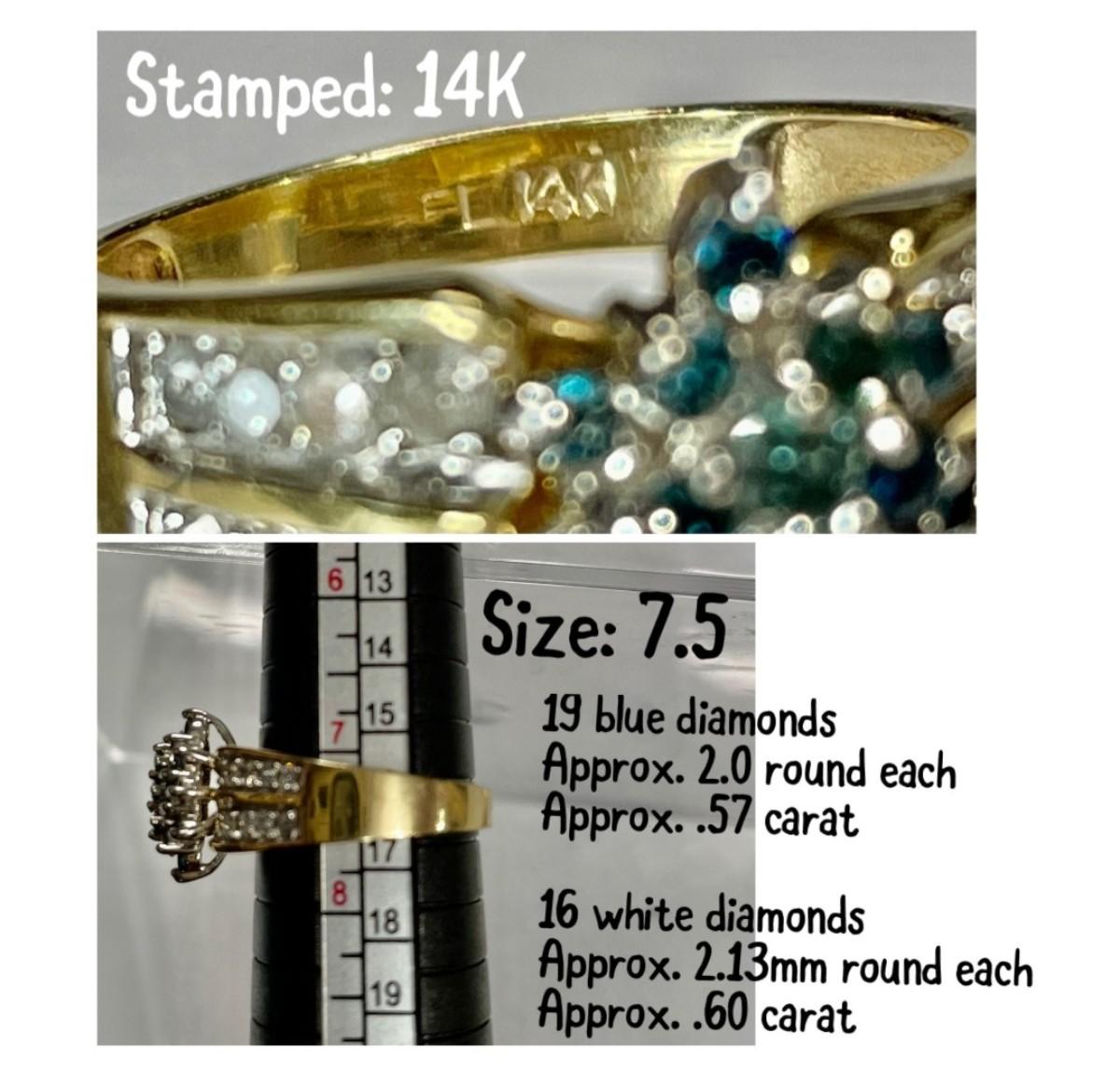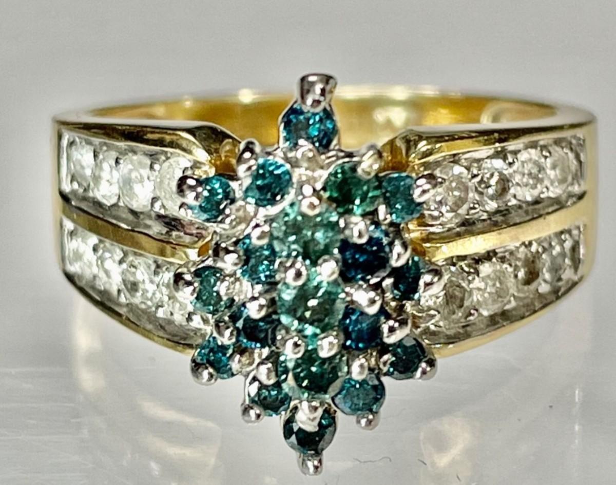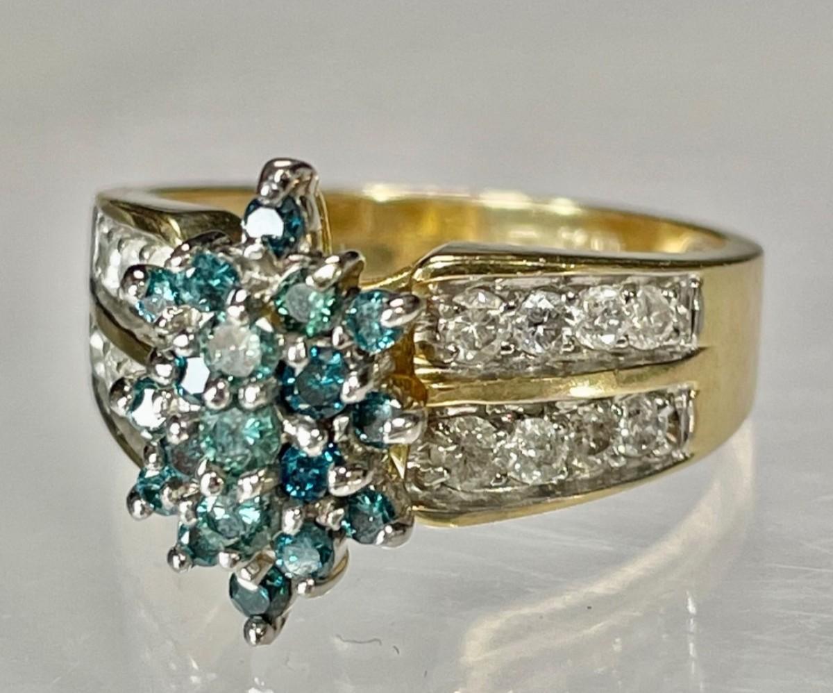 14 K Blue diamond / white diamond ring Reserve set