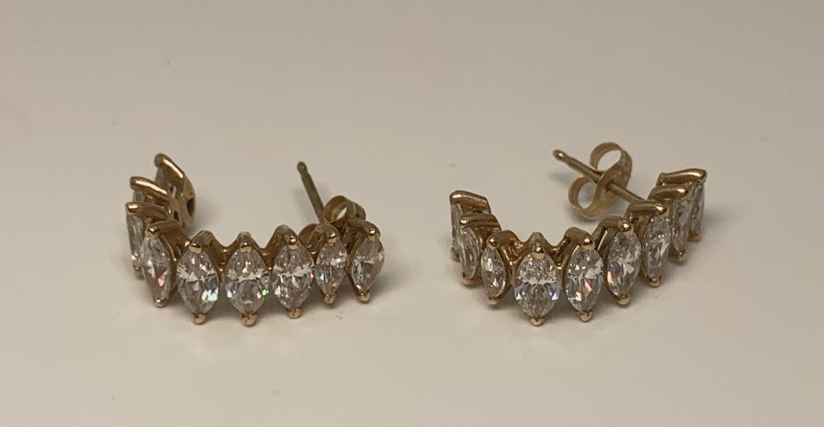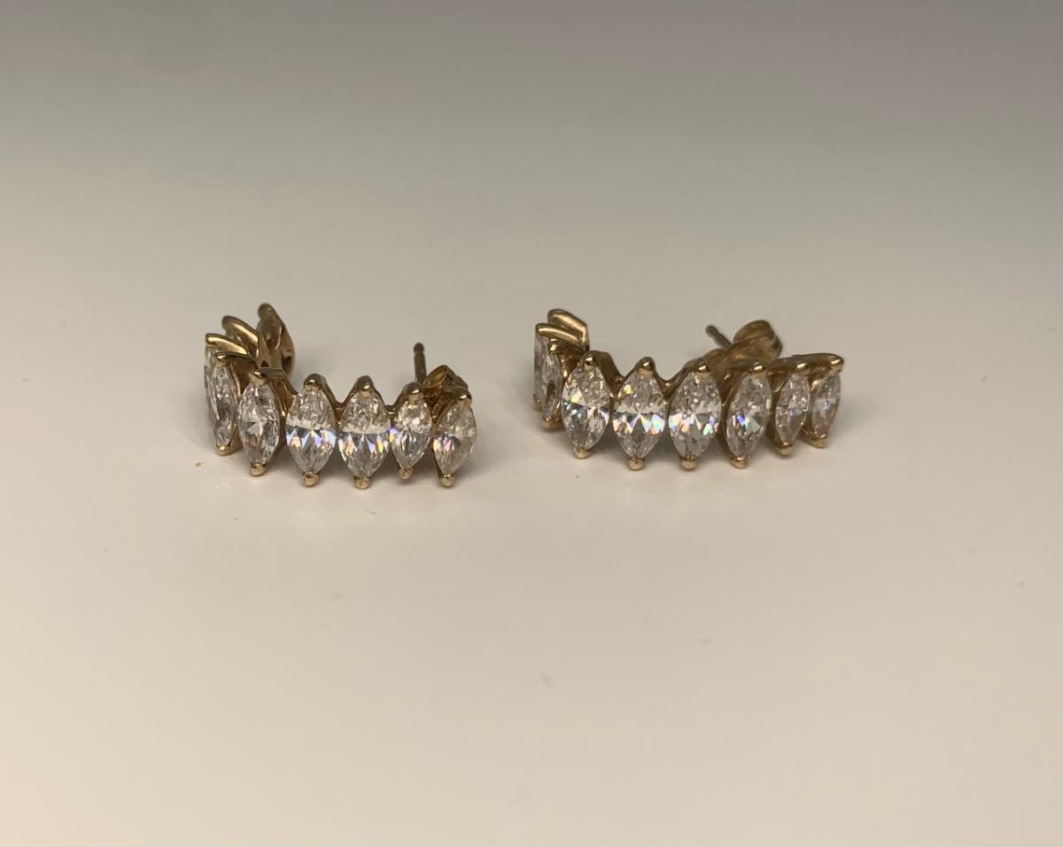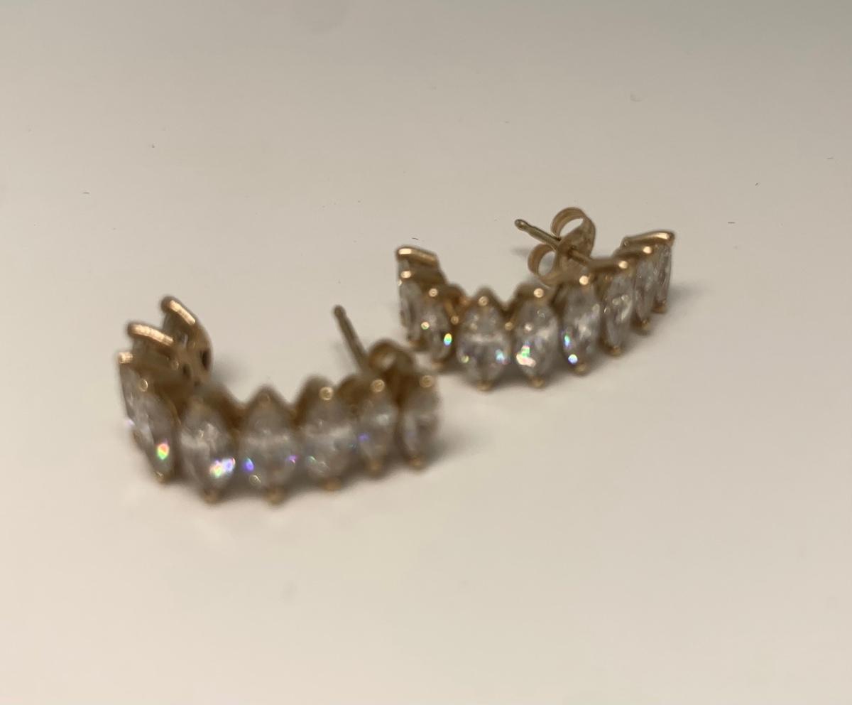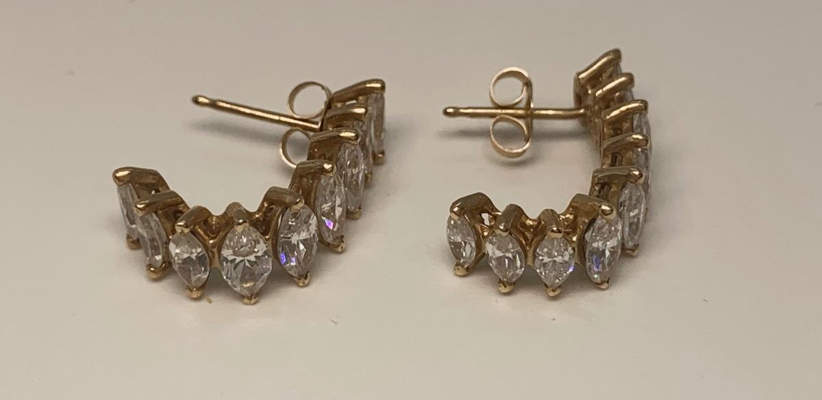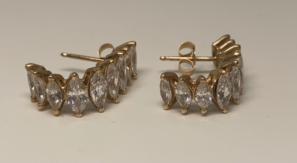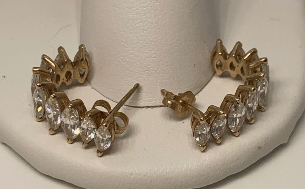 Cubic Zirconia Pierced Earrings: 14k, 3.9 g
