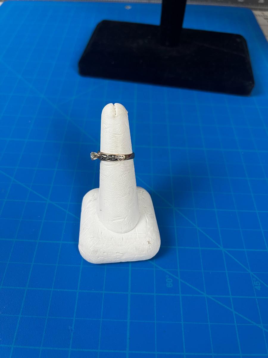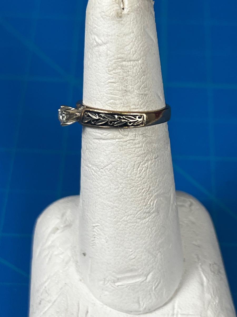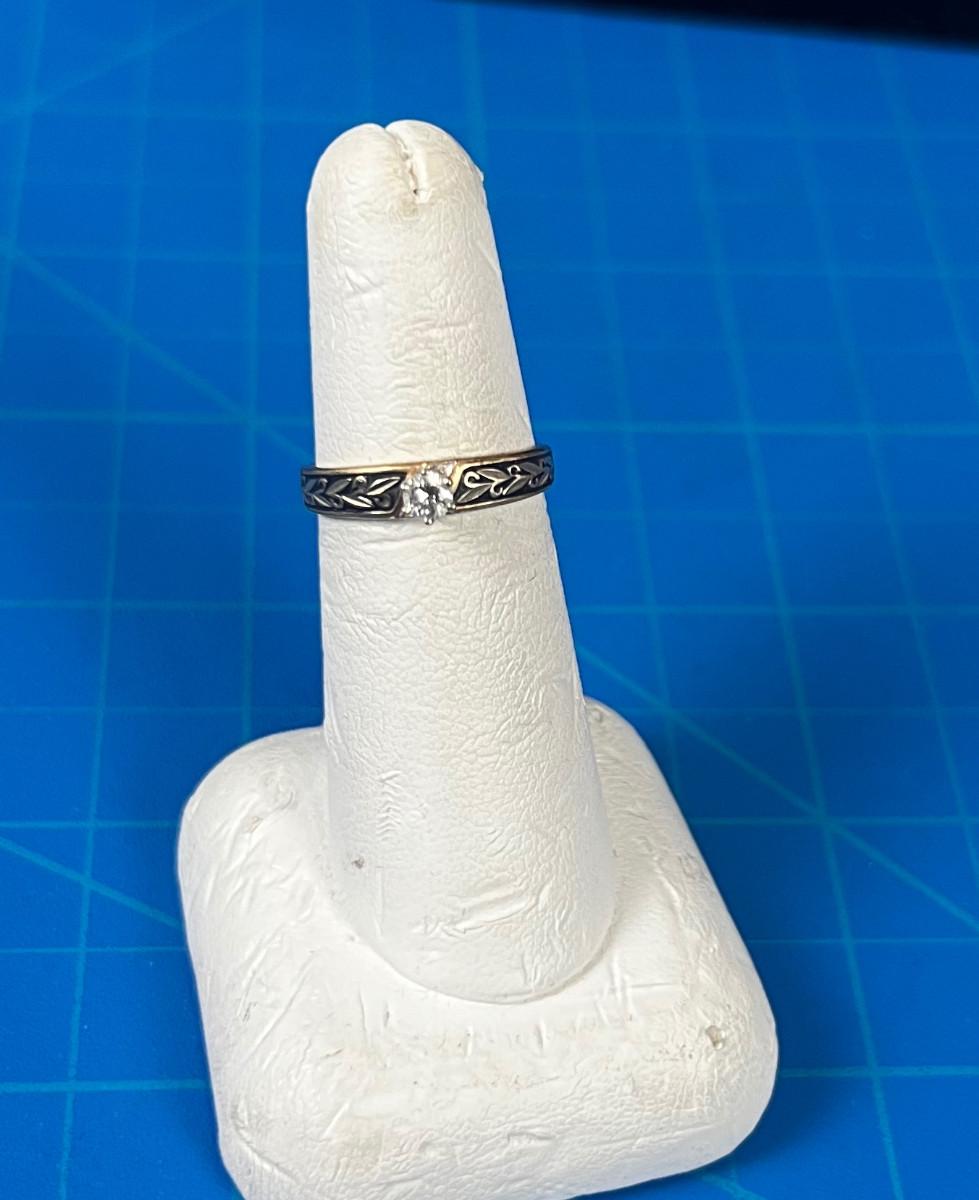 14 K Gold and Diamond Ring with Antique Leaf Etching on it
