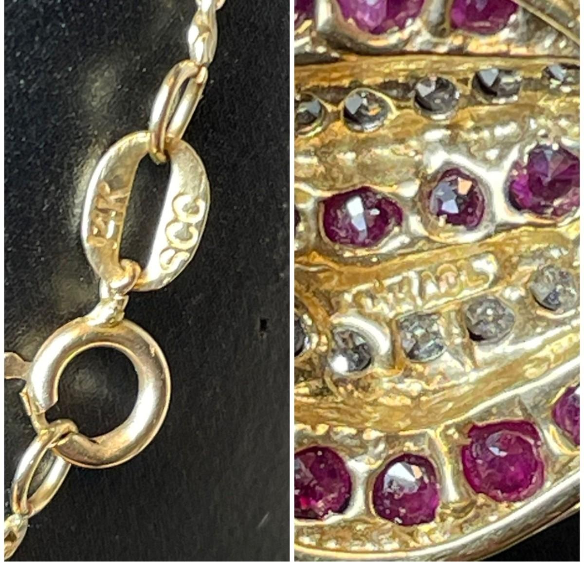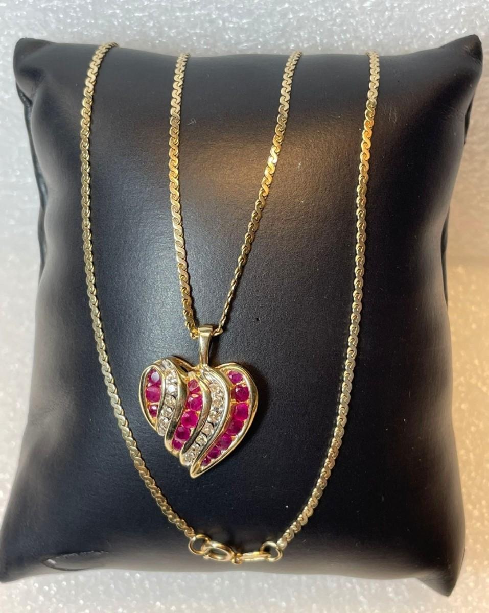 14 k Gold and ruby diamond heart pendant and chain 20 in 9.2 g
