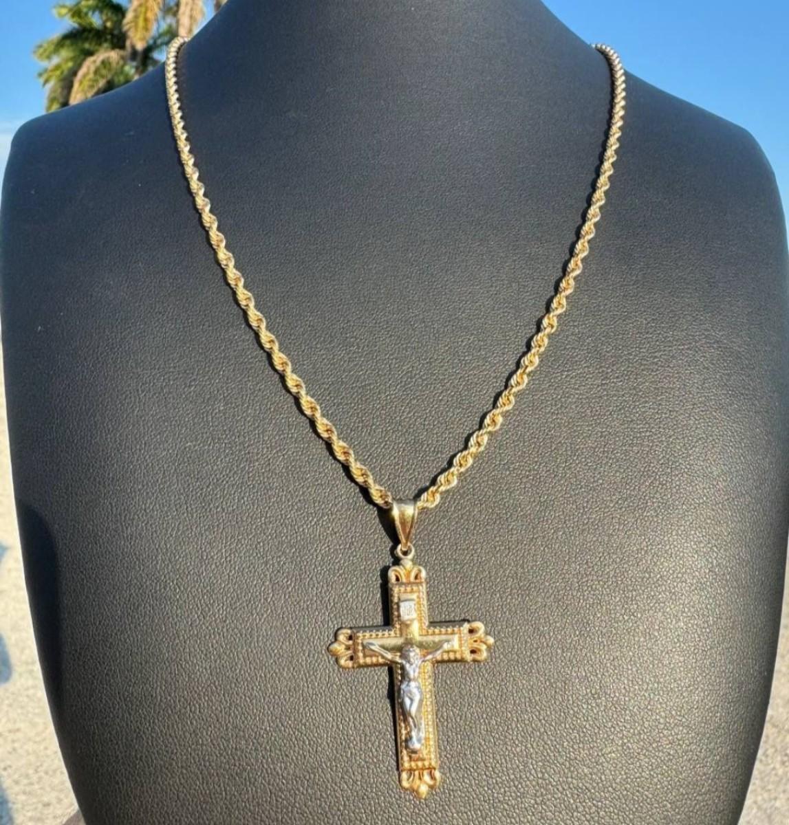 14 k Gold cross & rope necklace Reserve set