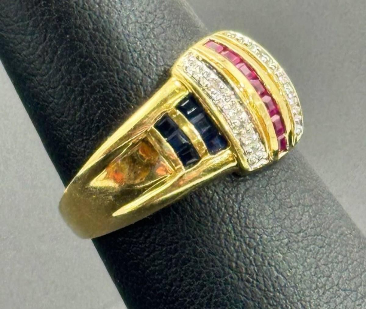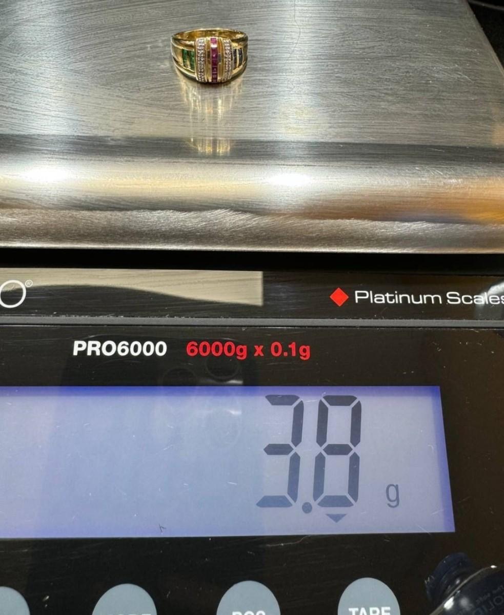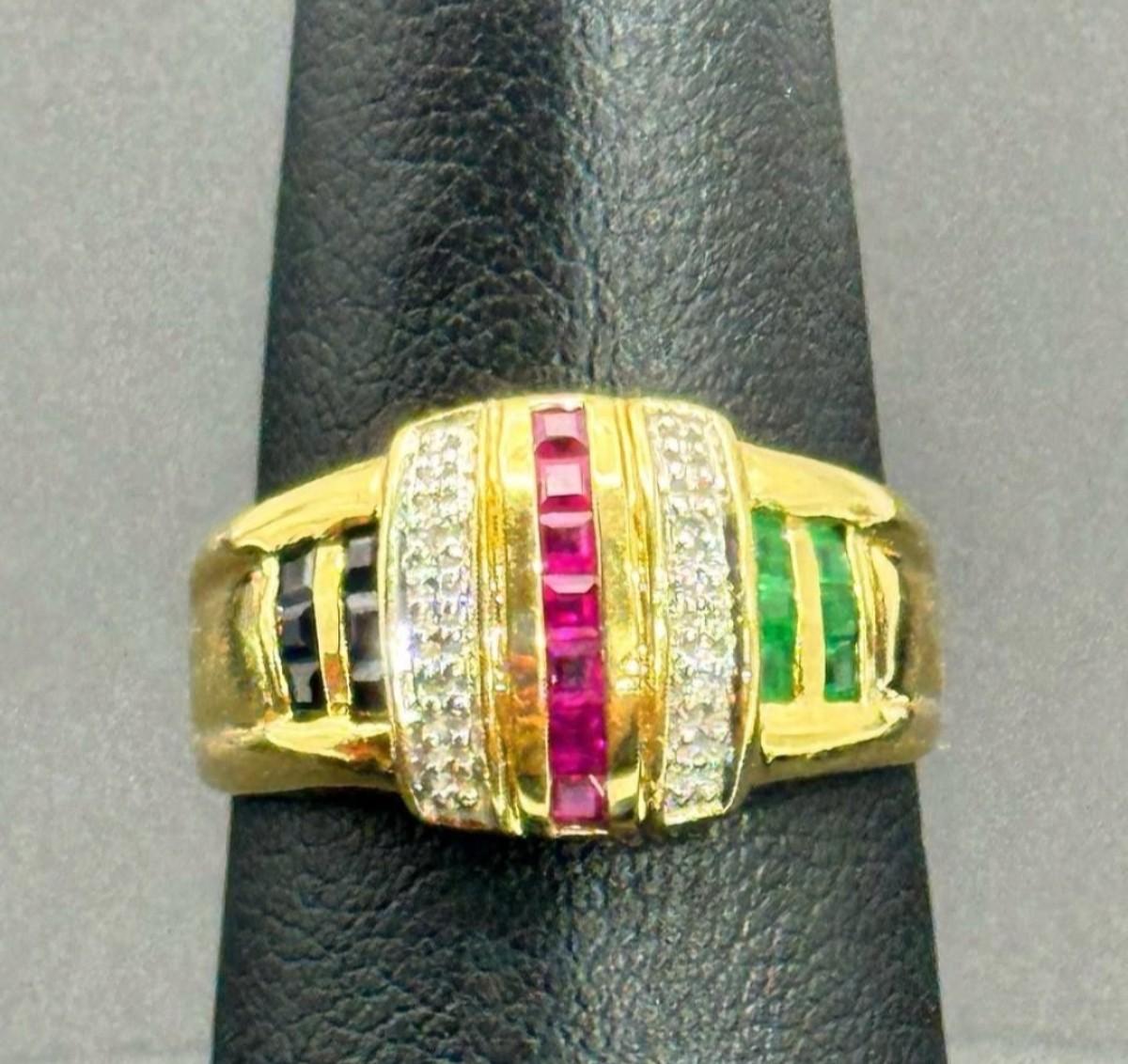 14 k gold diamond ,ruby,sapphire ring size 7