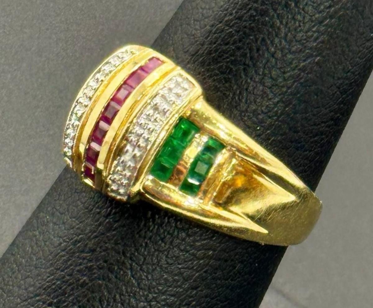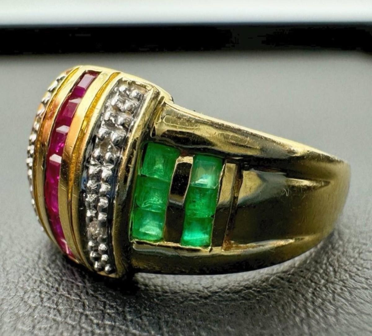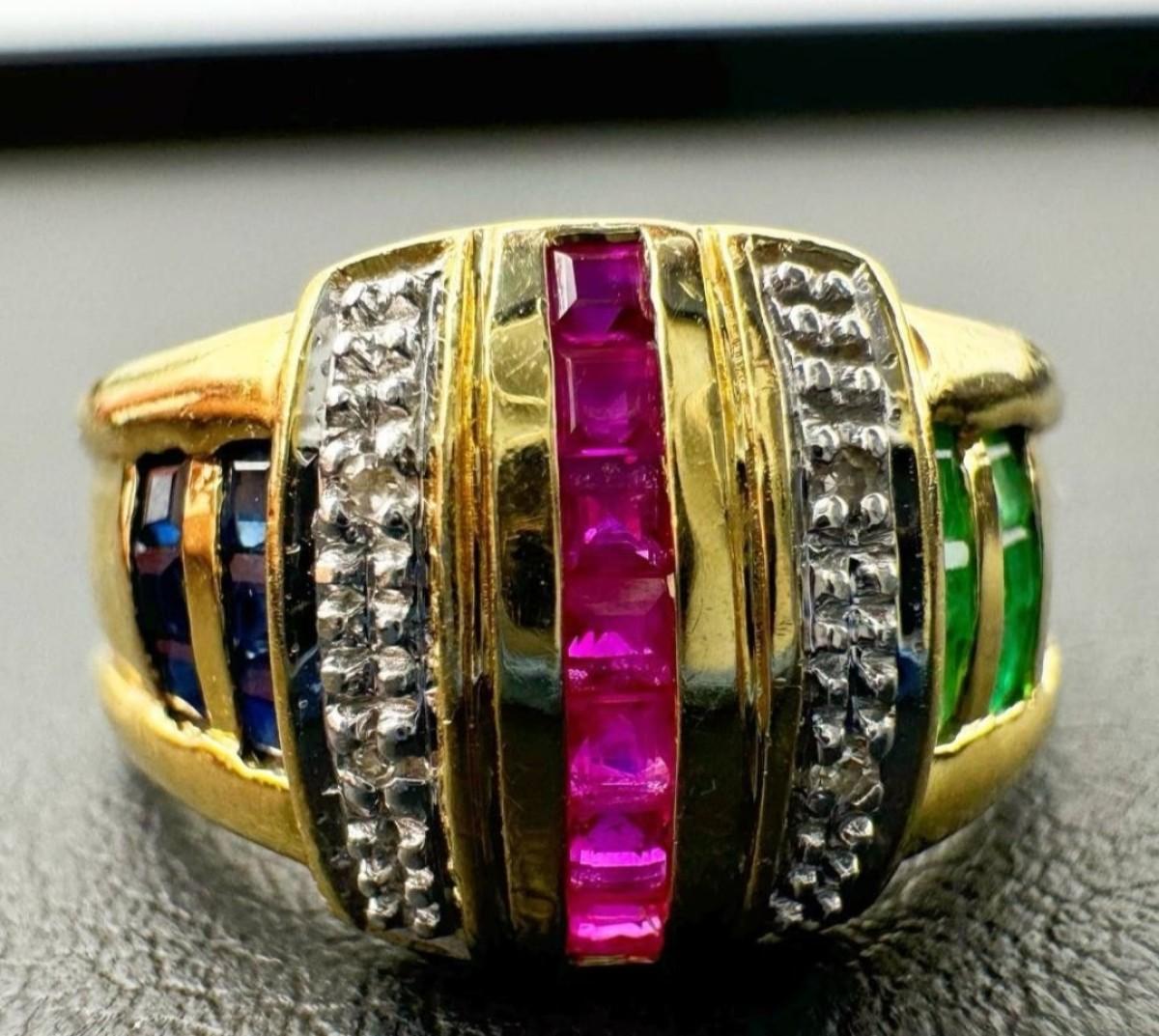 14 k gold diamond ,ruby,sapphire ring size 7