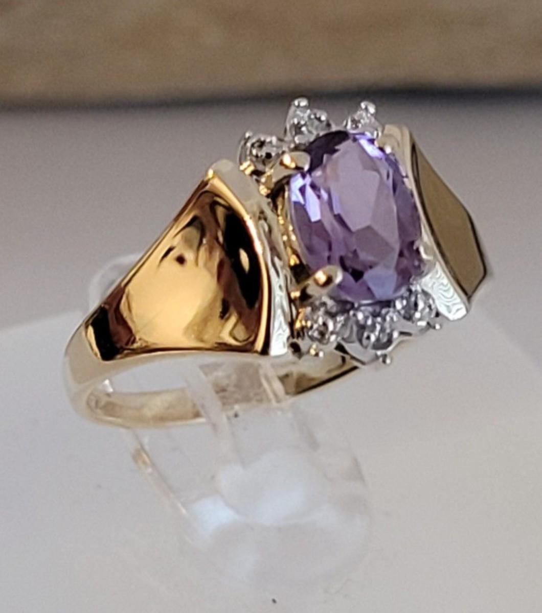 10k Gold Ring Diamond aquamarine size 7 4.2 g